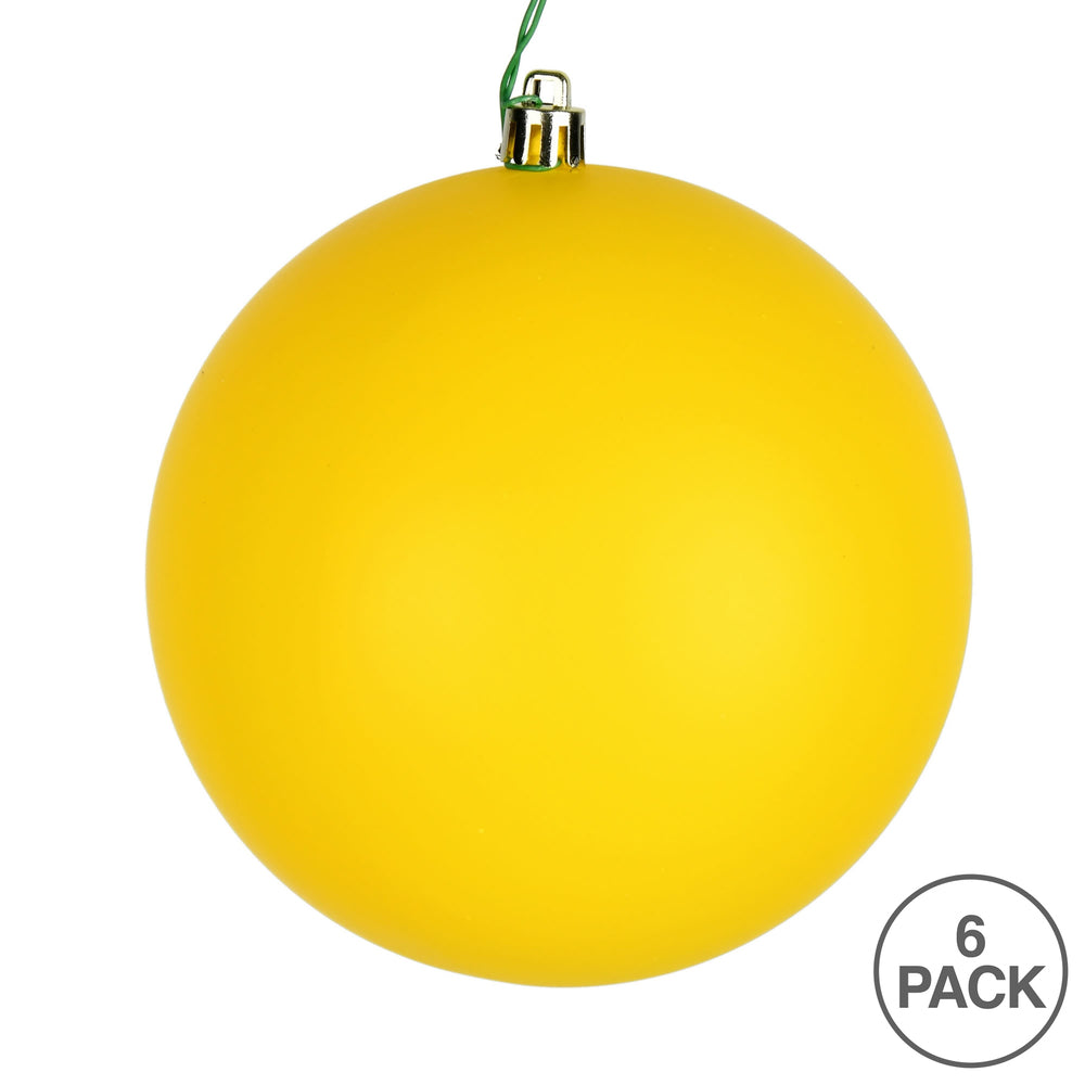Vickerman 4" Yellow Matte Ball Ornament 6 per Bag