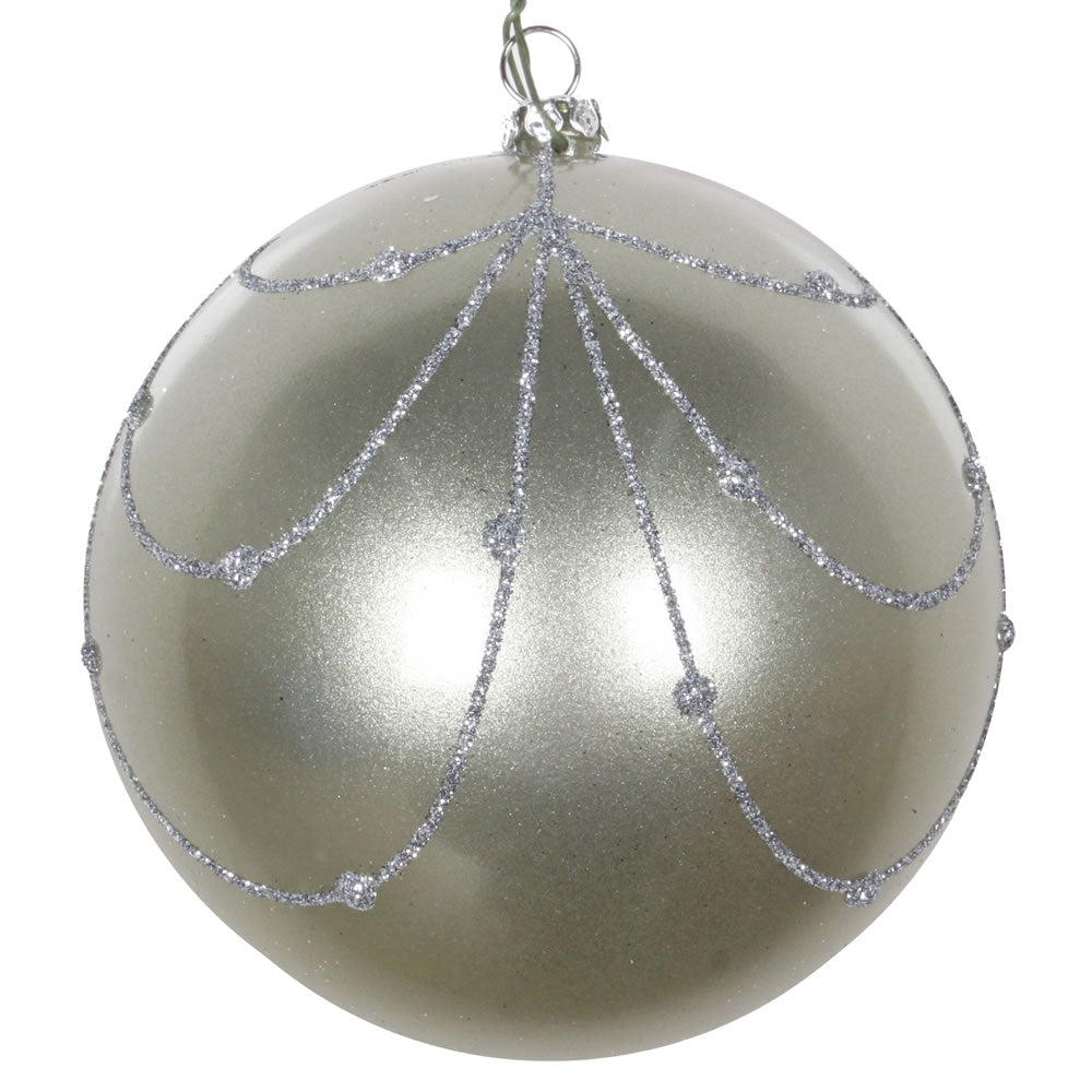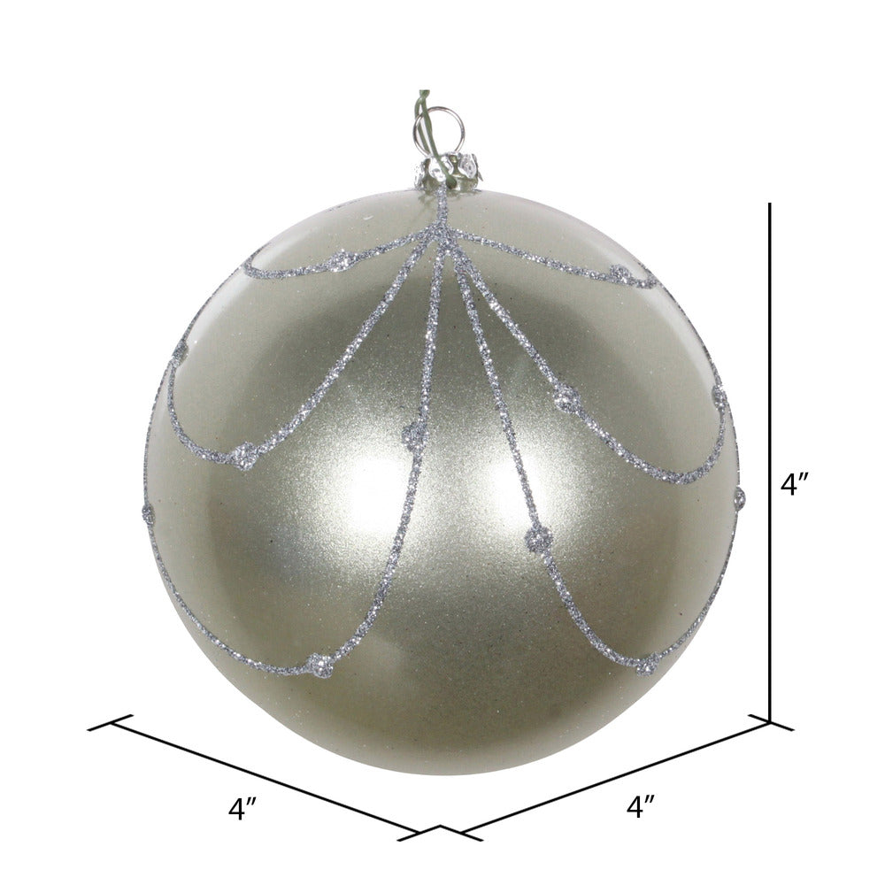 Vickerman 4" Limestone Candy Finish Curtain Ornament with Glitter Accents 4 per Bag