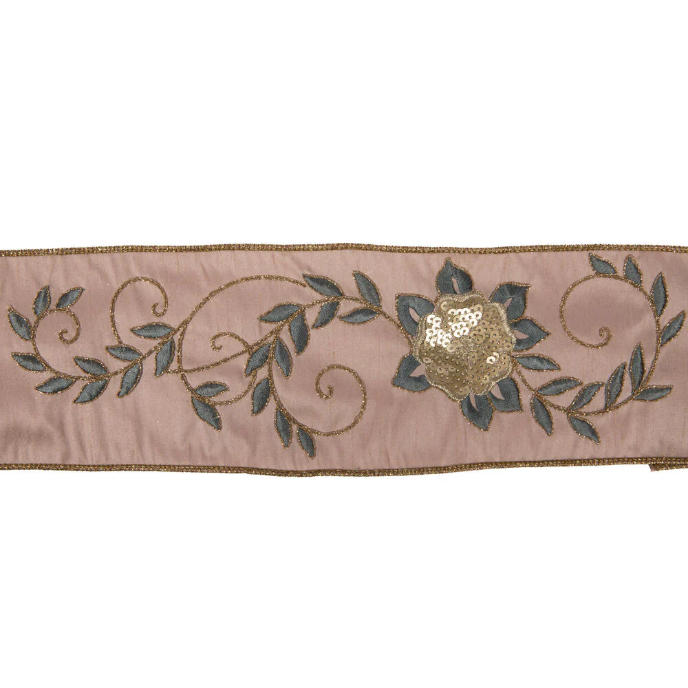 Vickerman 4" x 5 Yards Spruce Cord with Sequin Embroidered Dupion Ribbon