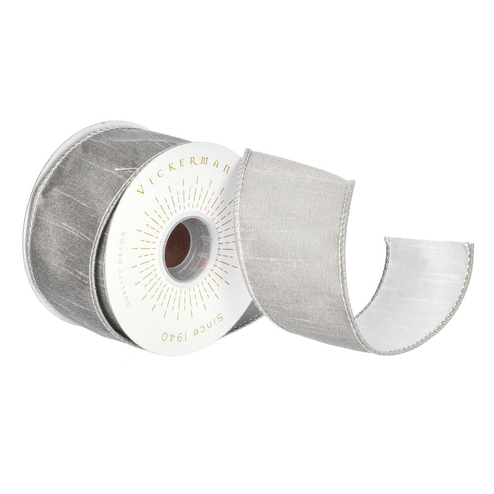 Vickerman 2.5" x 10 Yards Gray Dupion Double Fused Dupion Ribbon