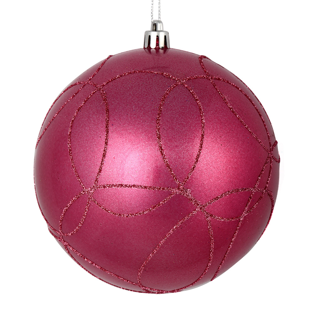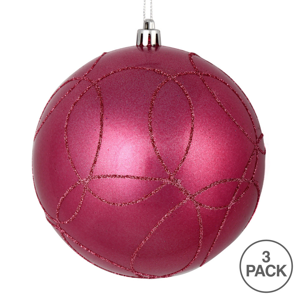 Vickerman 6" Mauve Candy Ornament with Circle Glitter Pattern 3 per Bag