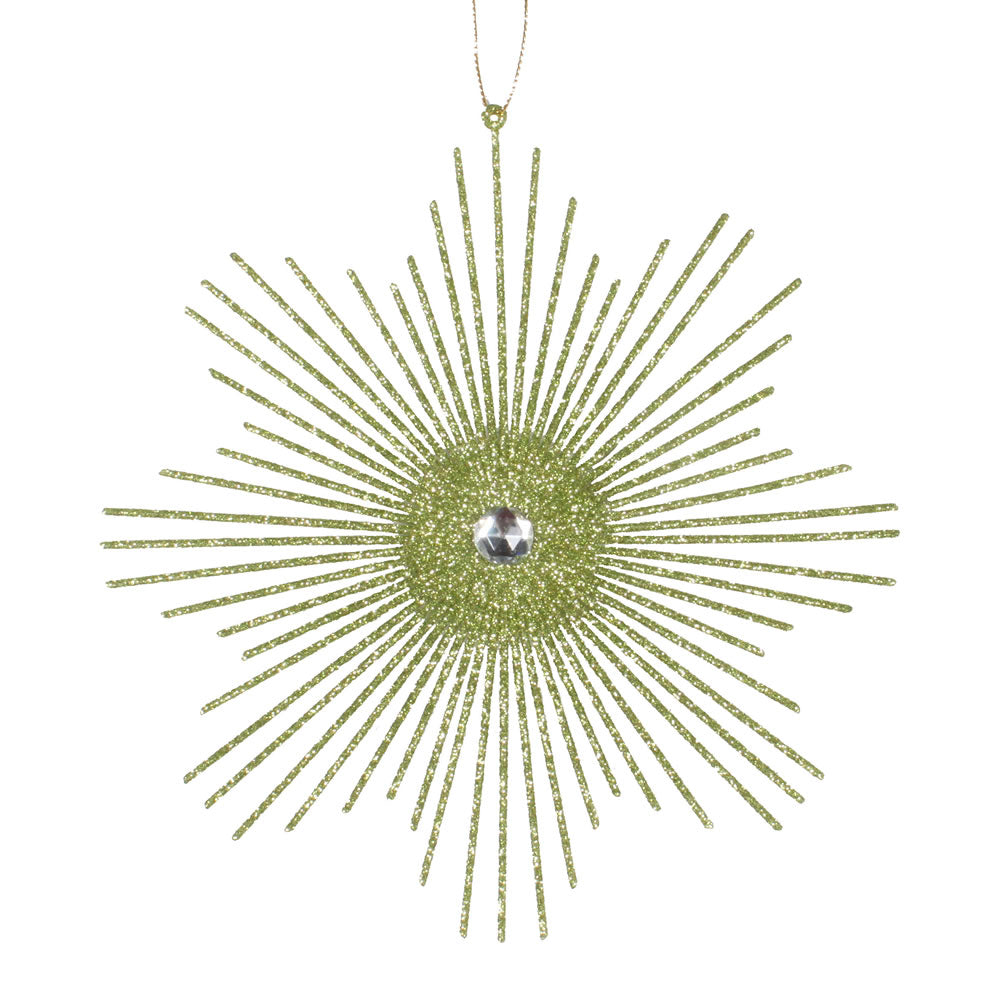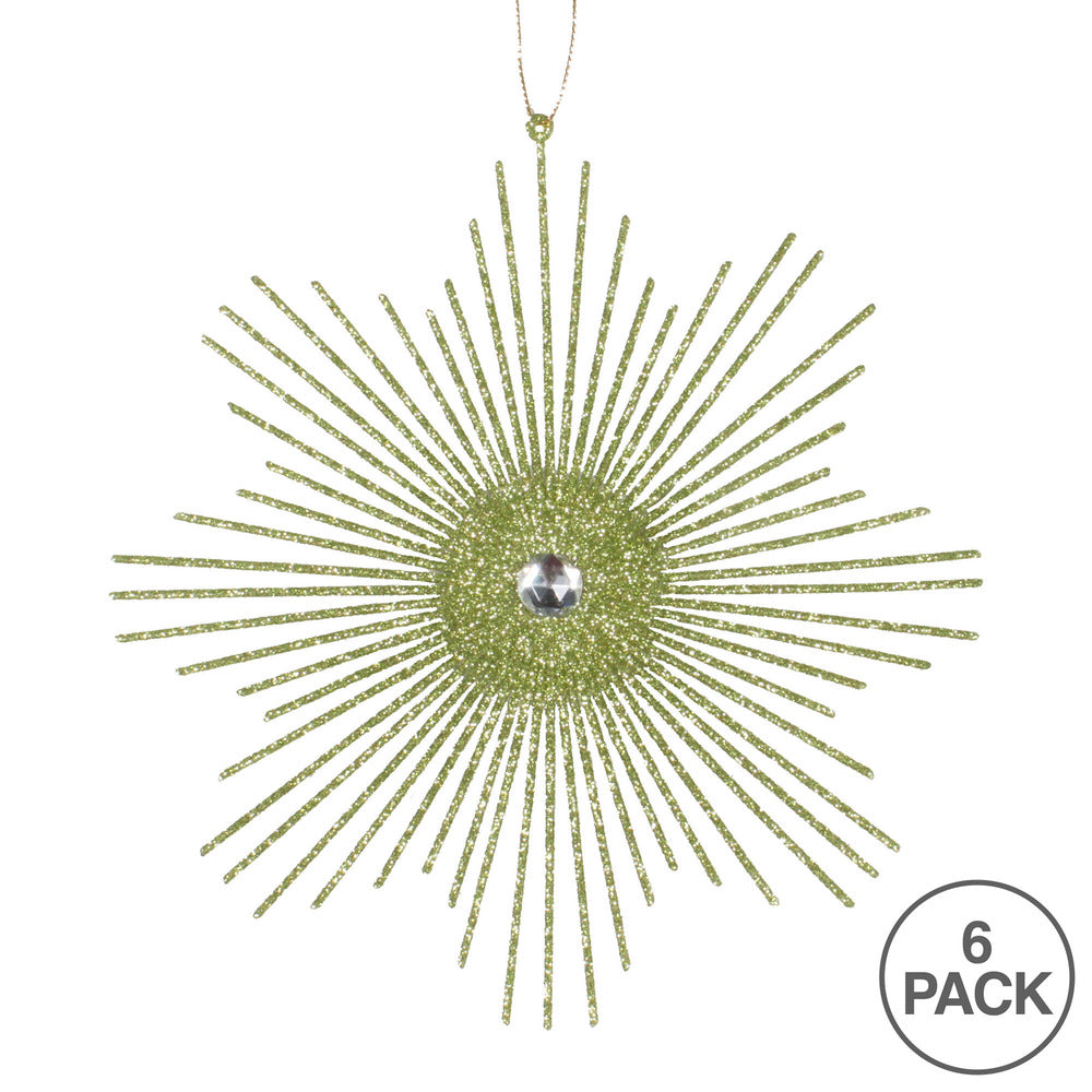 Vickerman 6.5" Lime Snowflake Burst Glitter Christmas Ornament 6 per Bag