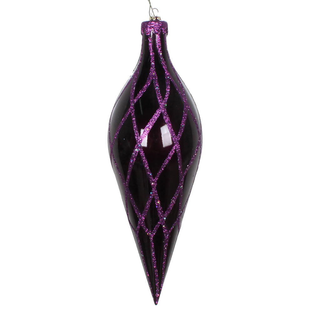 Vickerman 12" Plum Candy Finish Finial Ornament with Glitter Accents