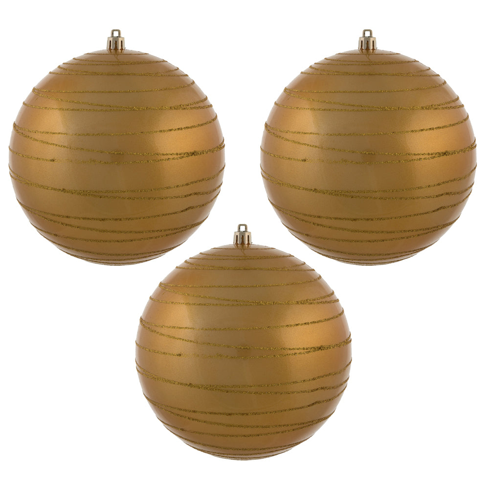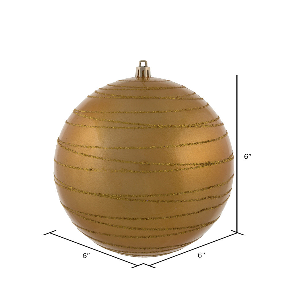 Vickerman 6" Honey Gold Candy Finish Ball Ornament with Glitter Lines 3 per Bag