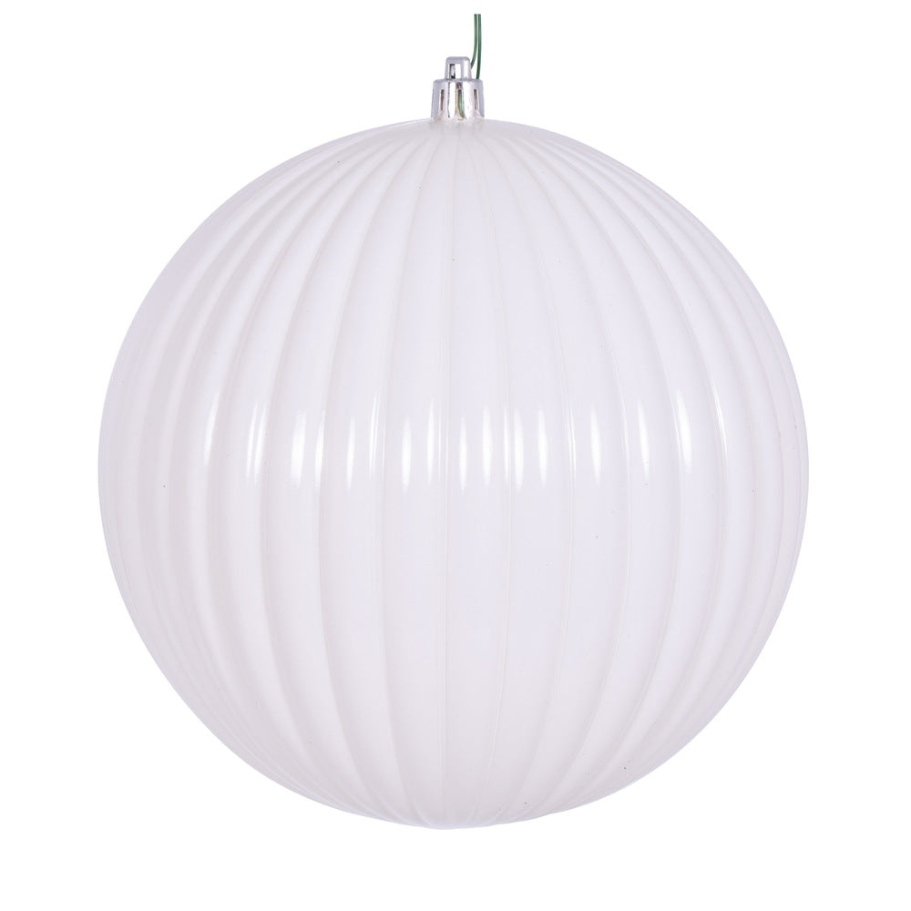 Vickerman 6" White Shiny Lined Ball Ornament 4 per Bag.