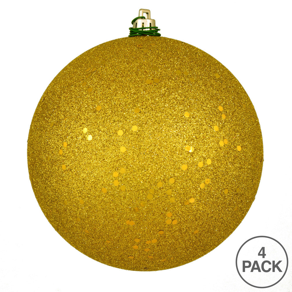 Vickerman 6" Medallion Gold Sequin Ball Ornament 4 per Bag