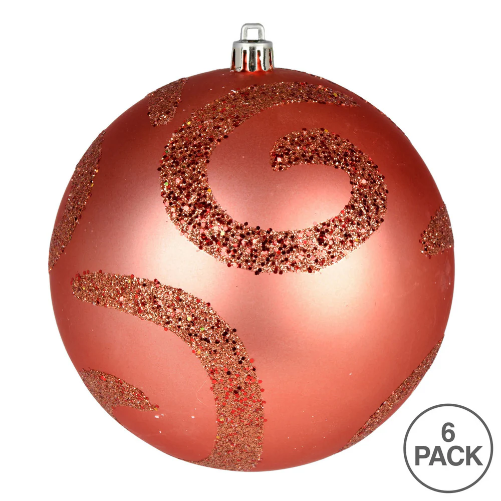 Vickerman 4" Coral Matte Sequin Swirl Ornament 6 per Bag