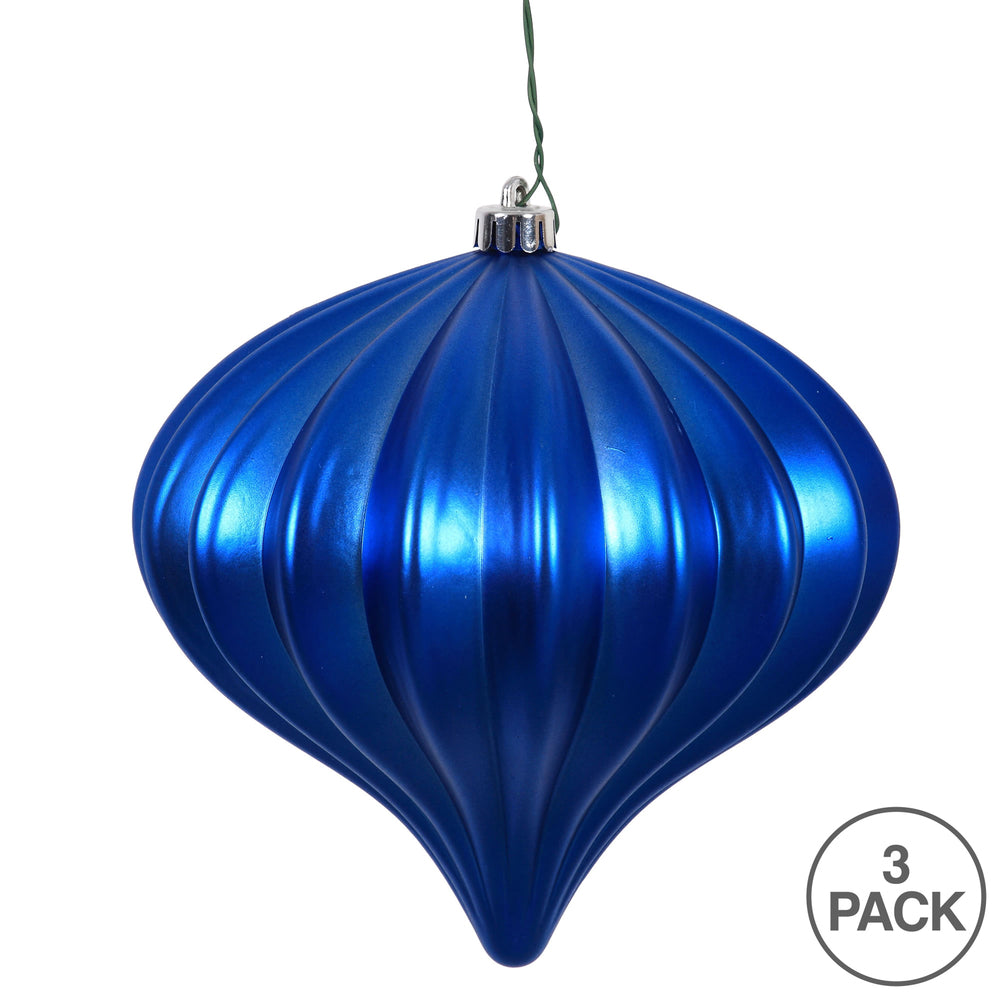 Vickerman 5.7" Blue Matte Onion Christmas Ornament UV treated Set of 3
