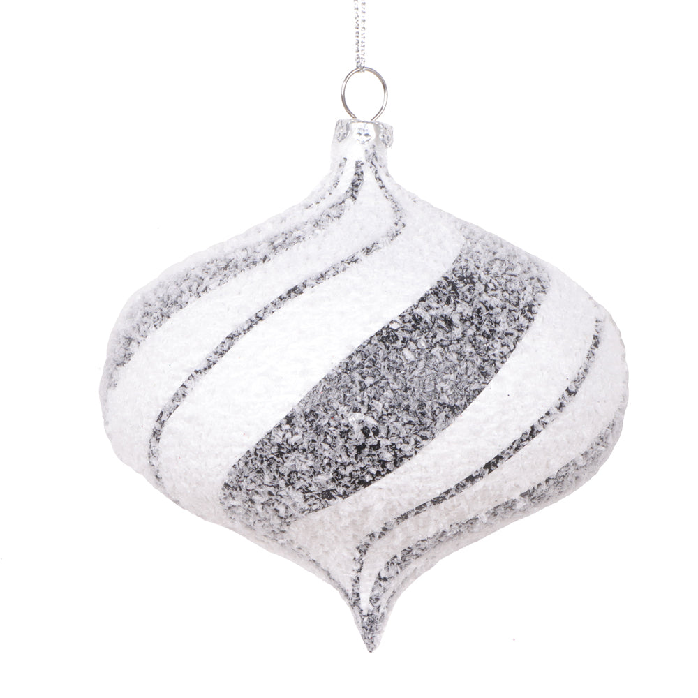 Vickerman 4" White Black Swirl Onion Ornament 4 per bag.