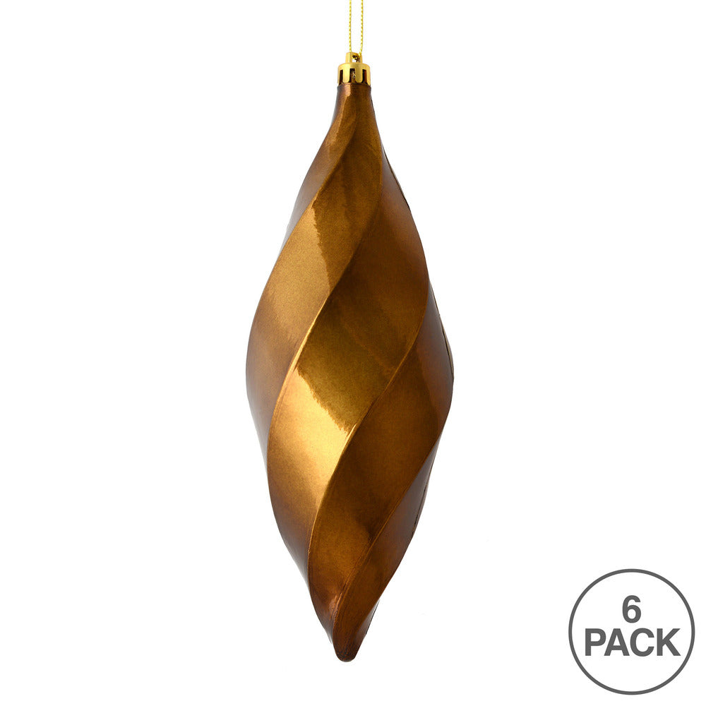 Vickerman 8" Mocha Shiny Swirl Finial Ornament Pack of 6