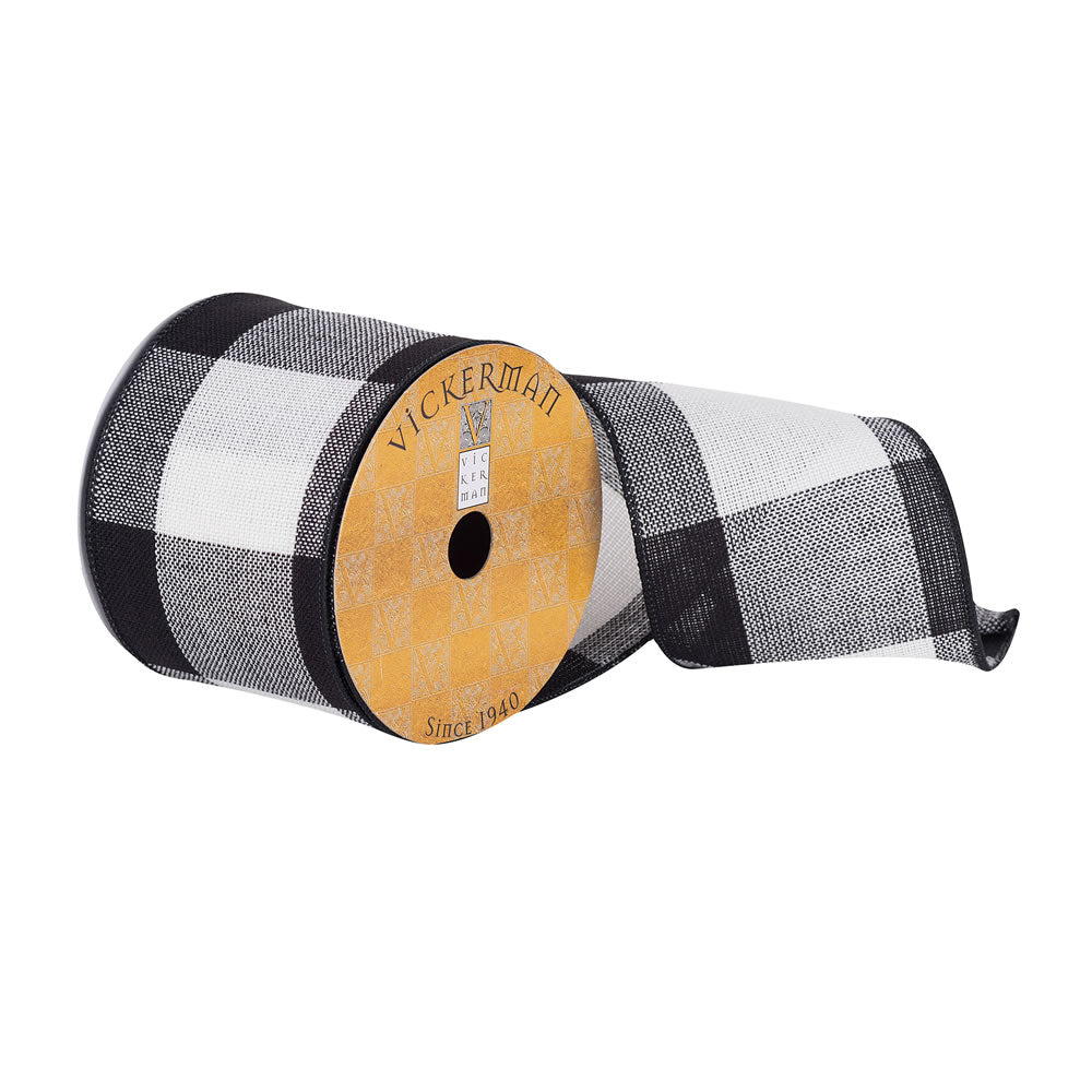 Vickerman 4" x 10 Yards Black and White Plaid Christmas Ribbon