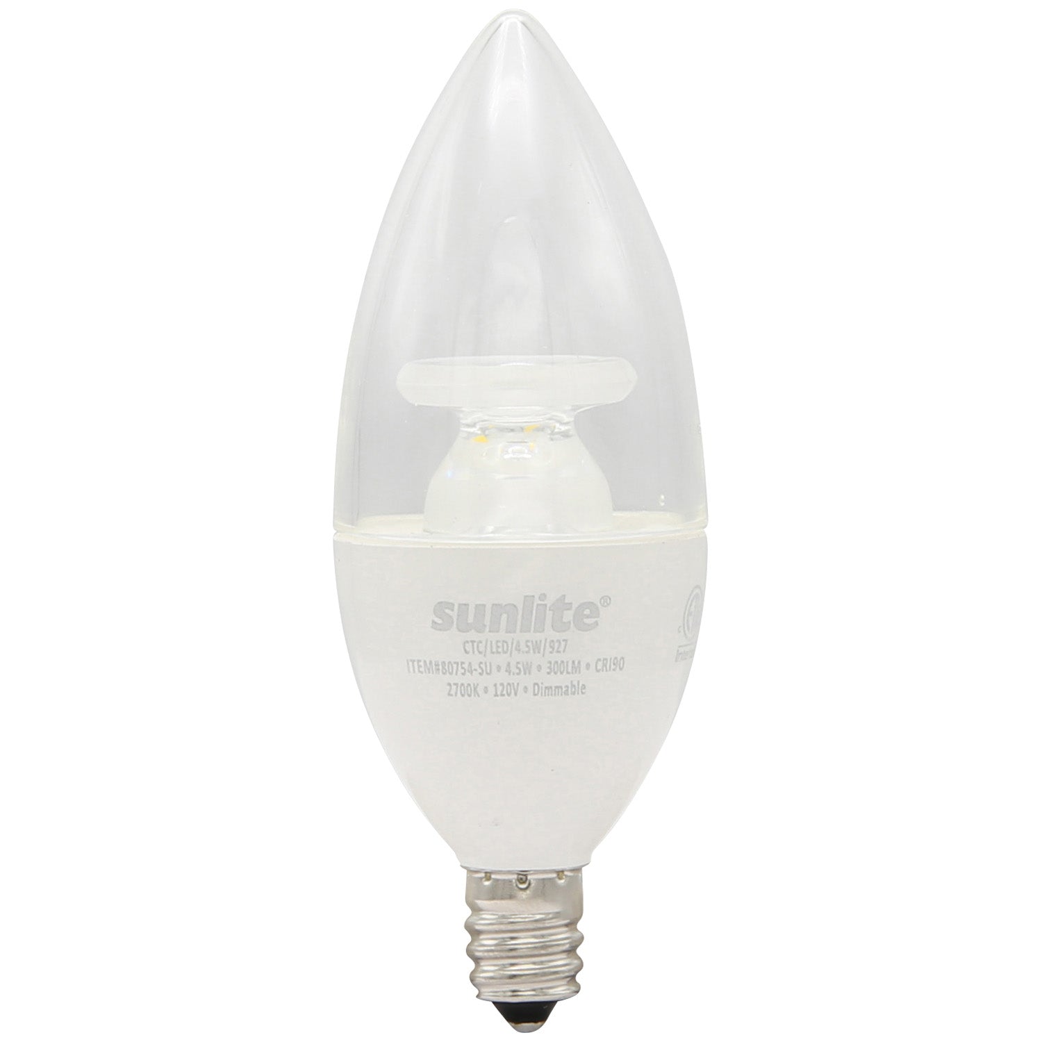 CTC/LED/4.5W/927 Decorative E12 Base Clear Dimmable Energy Star CRI90 2700K