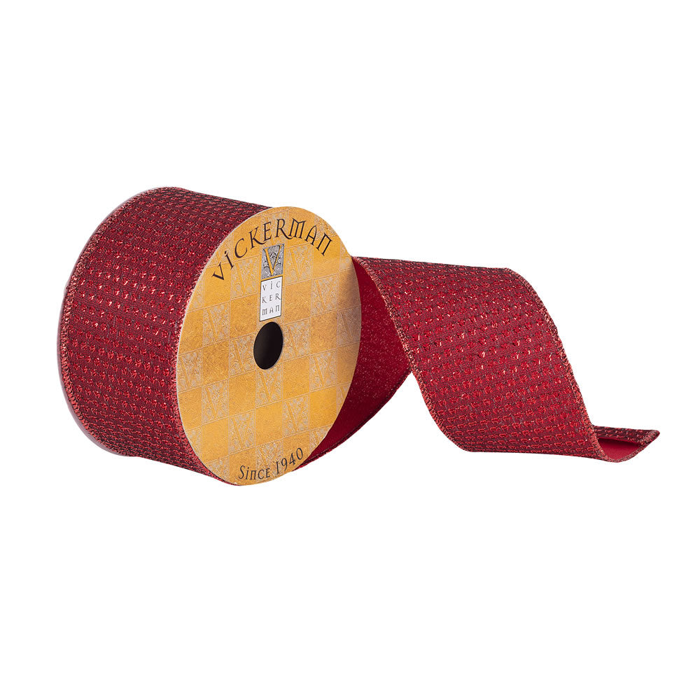 Vickerman 2.5" x 10 Yards Red Woven Dot Dupion Christmas Ribbon