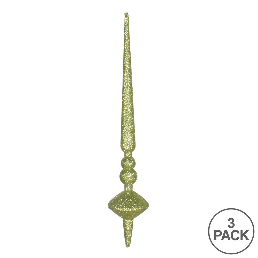 Vickerman 12" Lime Glitter Cupola Finial Ornament Pack of 3