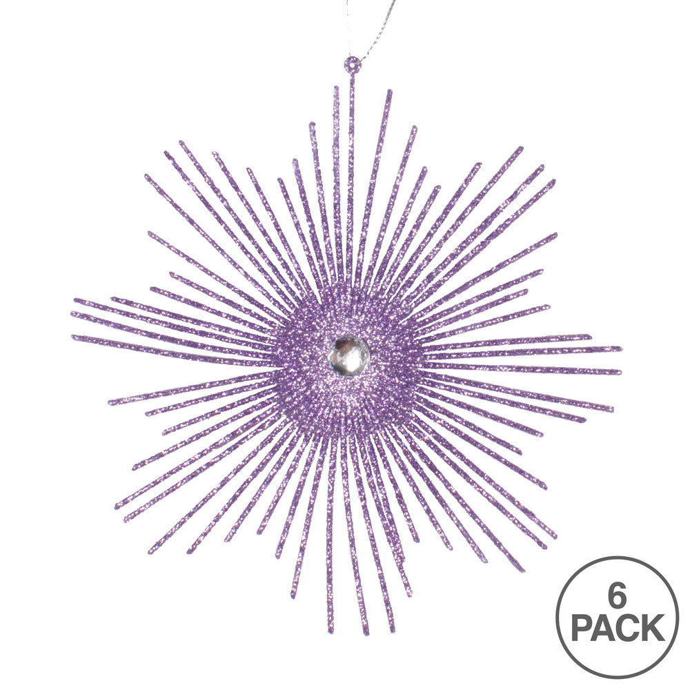 Vickerman 6.5" Lavender Snowflake Burst Glitter Christmas Ornament 6 per Bag
