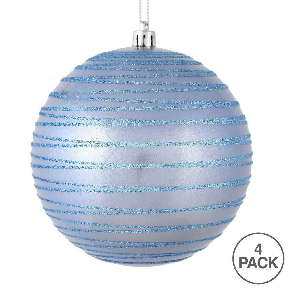 Vickerman 4" Lilac Candy Finish Ball Ornament with Glitter Lines 4 per Bag