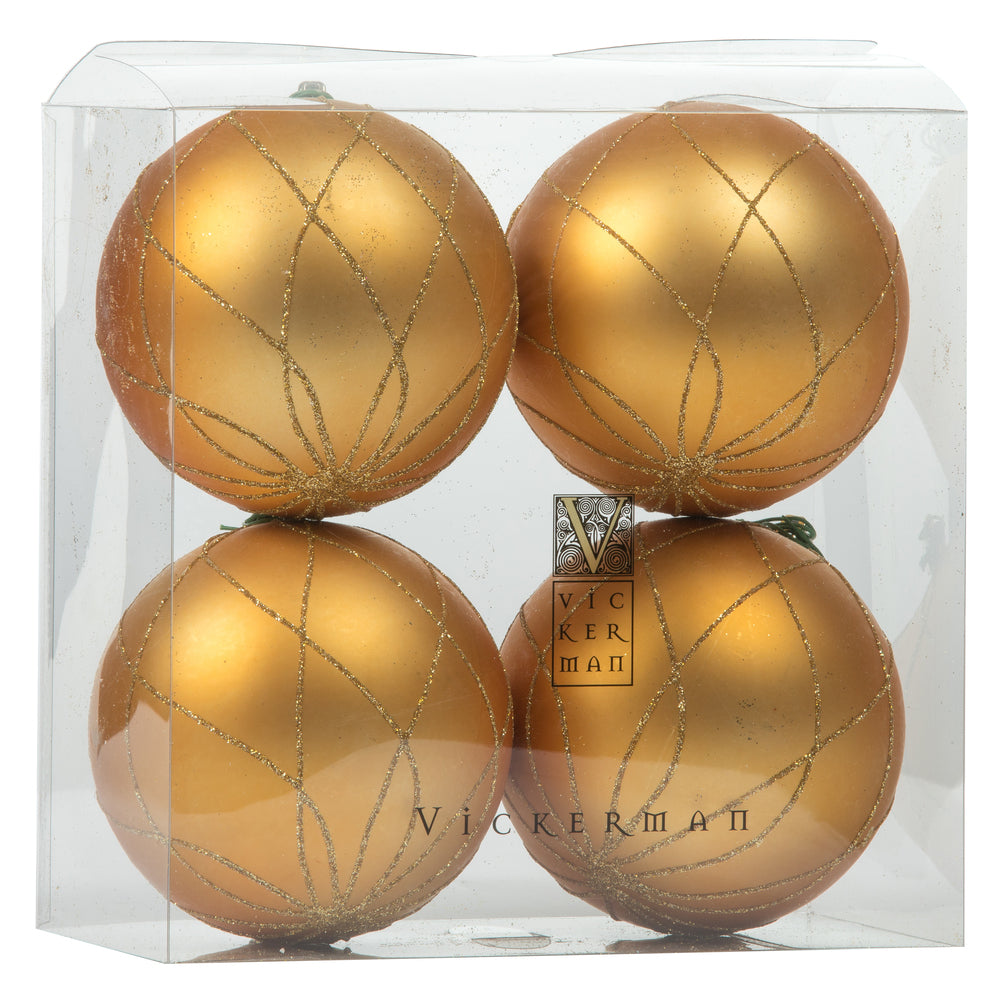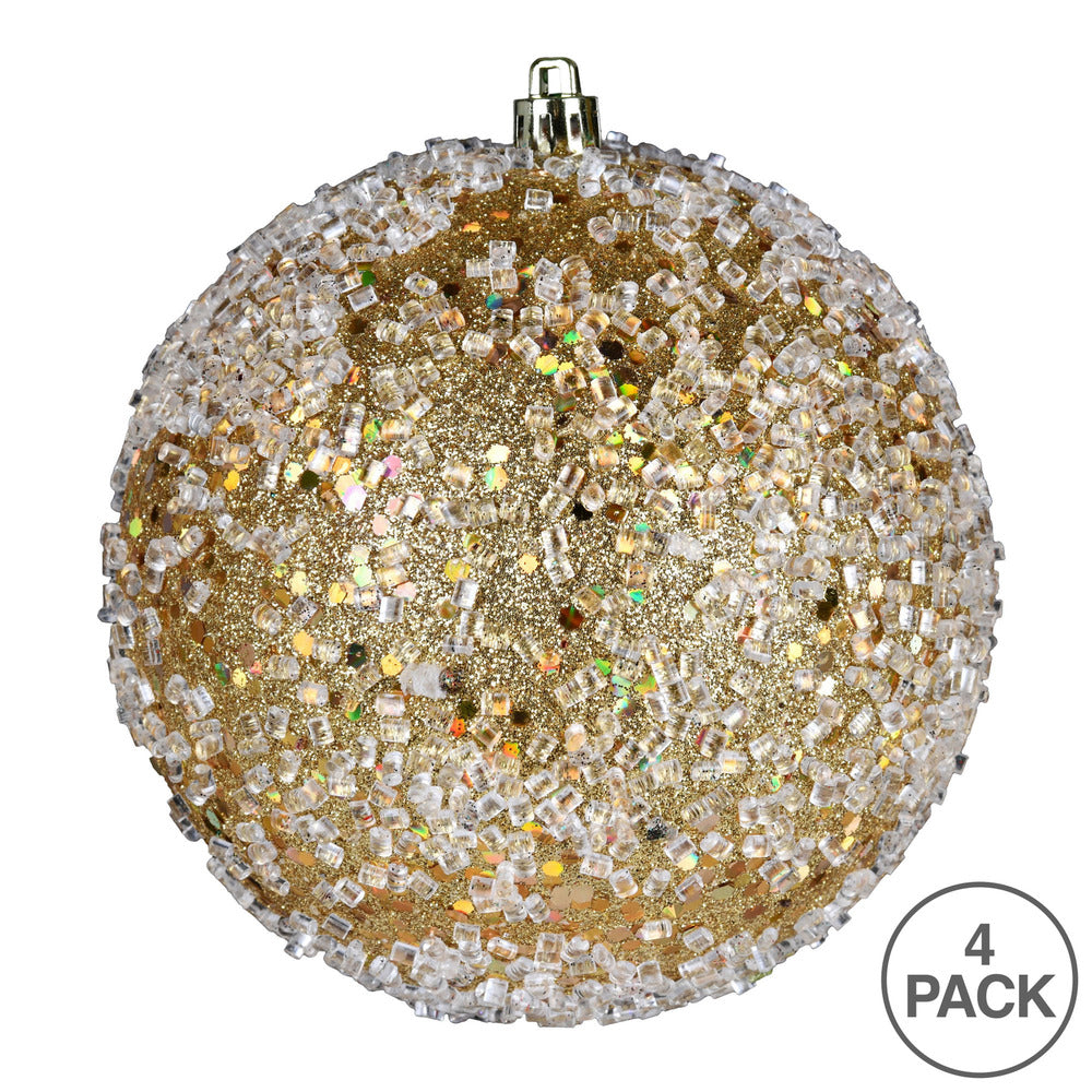 Vickerman 4.75" Gold Glitter Hail Ball Ornament 4 per Bag