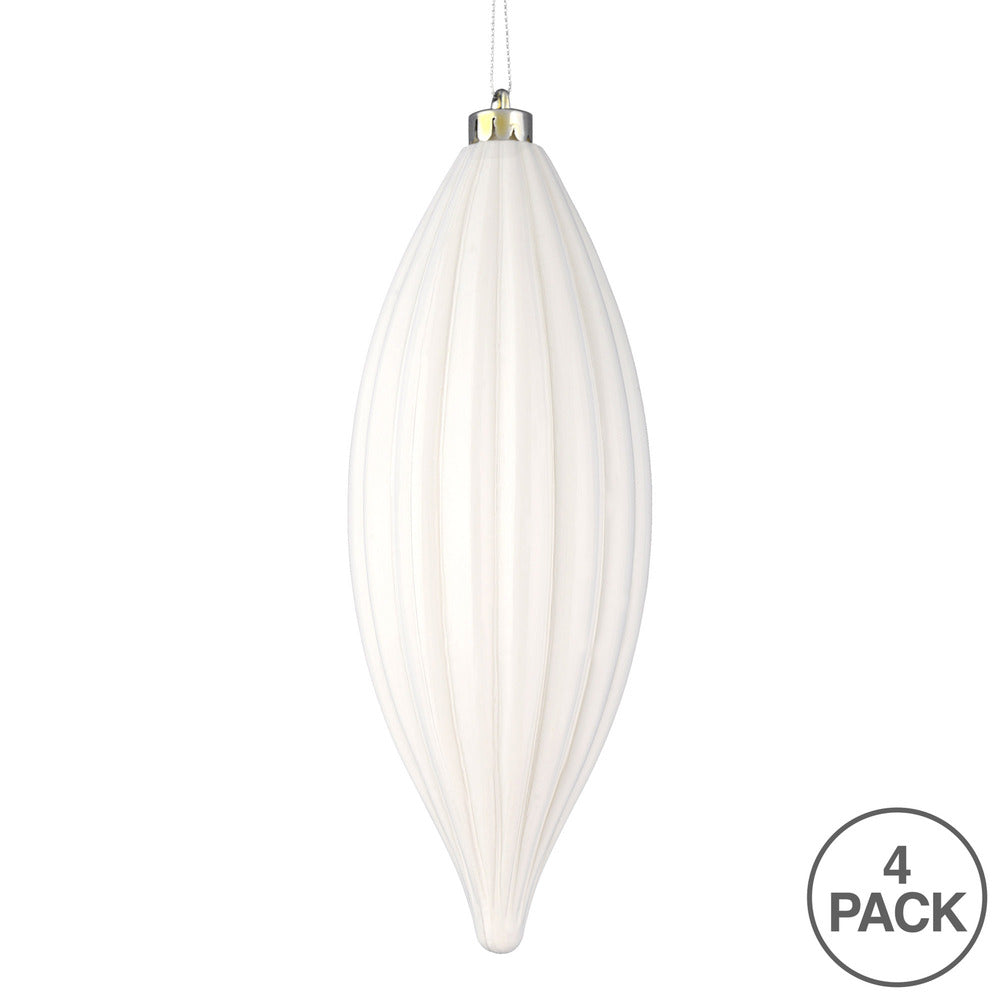 Vickerman 8" White Shiny Line Finial Ornament Pack of 4