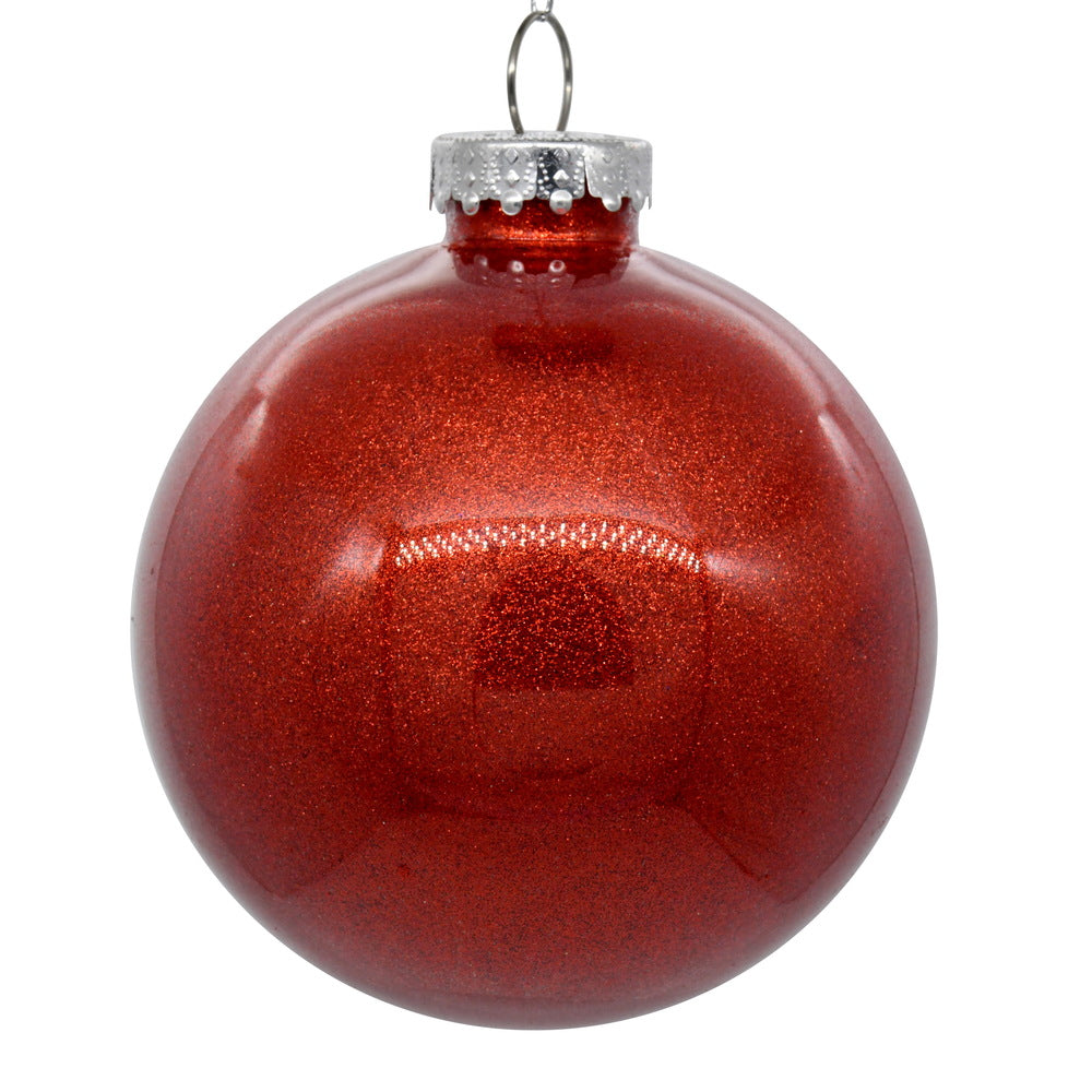 Vickerman 6" Clear Ball Christmas Ornament with Red Glitter Interior 4 Pieces per bag