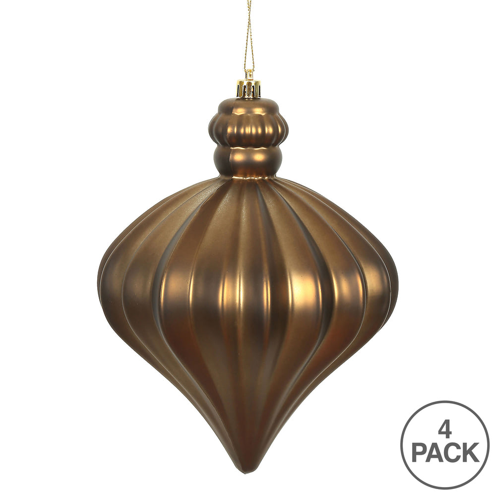 Vickerman 6" Mocha Matte Onion Drop Christmas Ornament 4 per pack