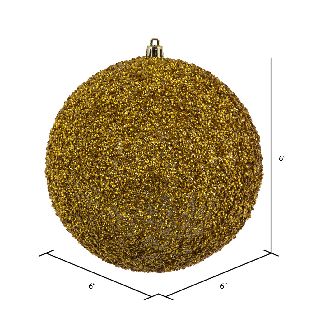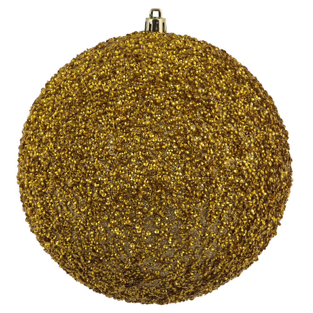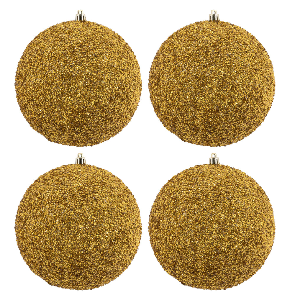 Vickerman 6" Gold Beaded Ball Ornament 4 per Bag