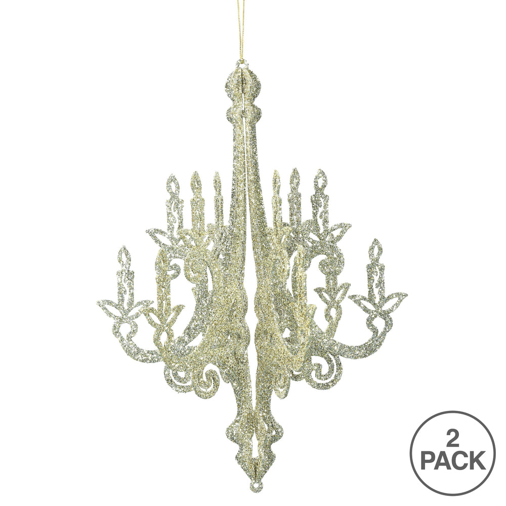 Vickerman 16" Champagne Glitter Chandelier Christmas Ornament 2 per bag