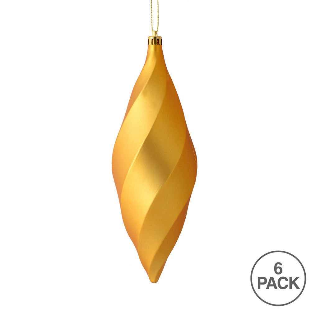 Vickerman 8" Honey Gold Matte Swirl Finial Ornament Pack of 6
