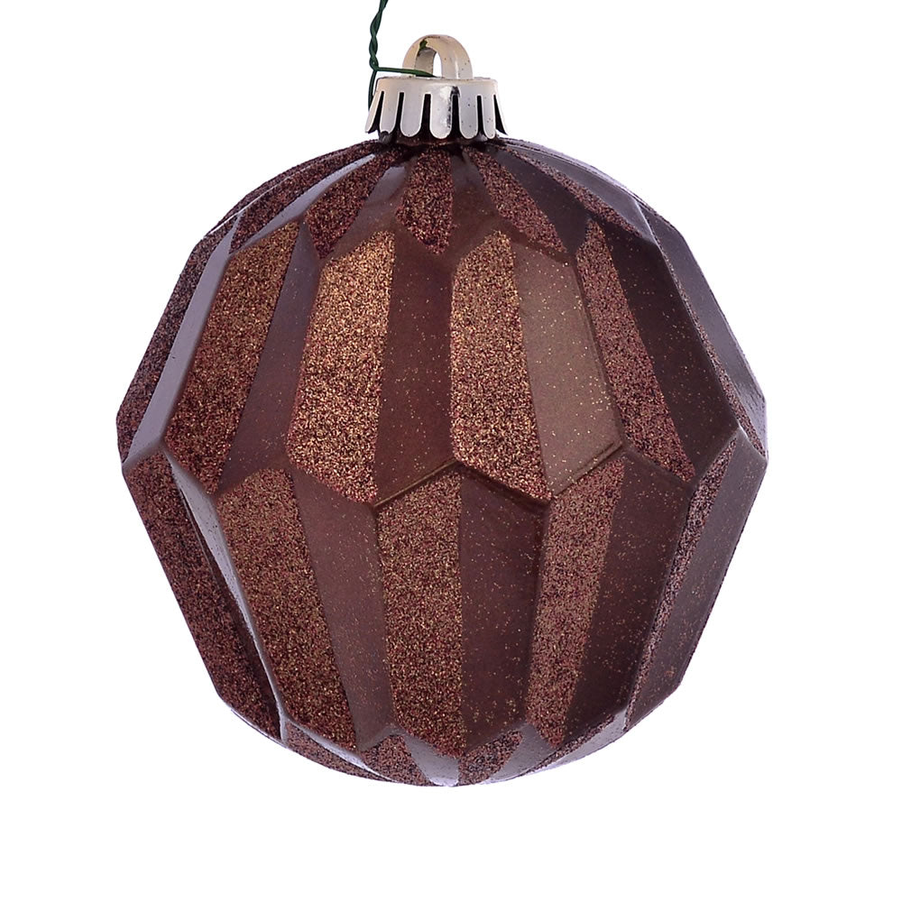 Vickerman 5" Mocha Glitter Faceted Ball Ornament 3 per Bag
