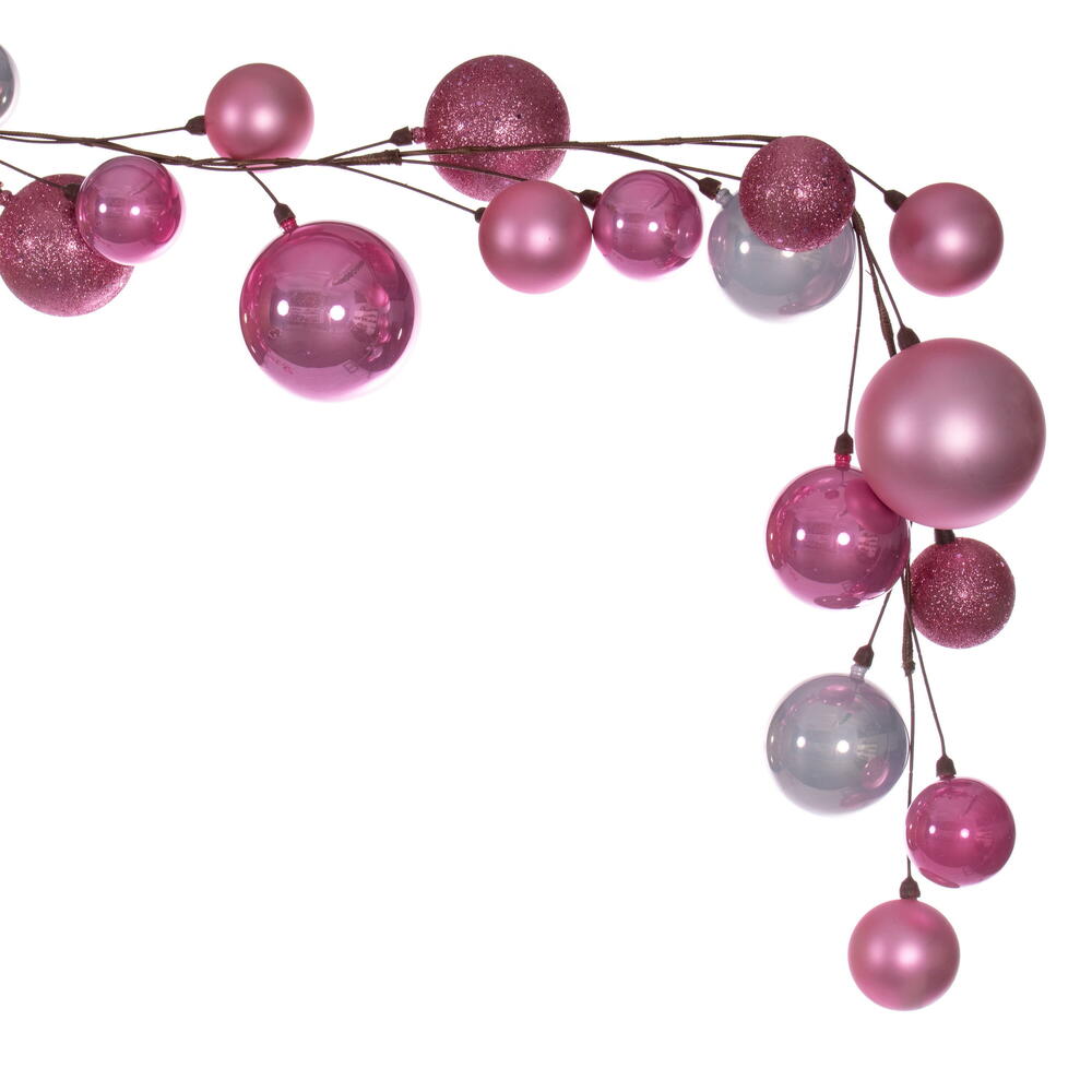 Vickerman 10' Pink Assorted Finish Branch Ball Ornament Garland.