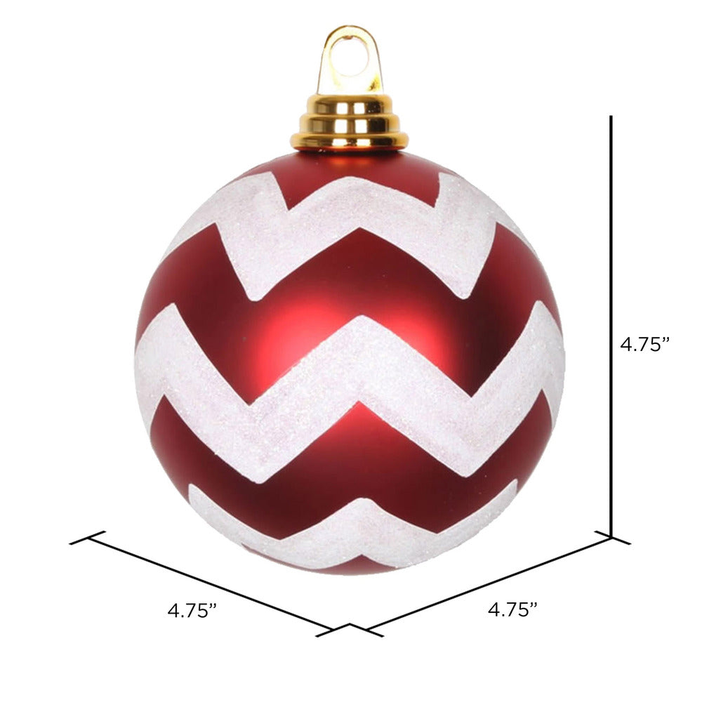 Vickerman 4.75" Red and White Matte Chevron Ball Christmas Ornament with Glitter Accents 3 per Box