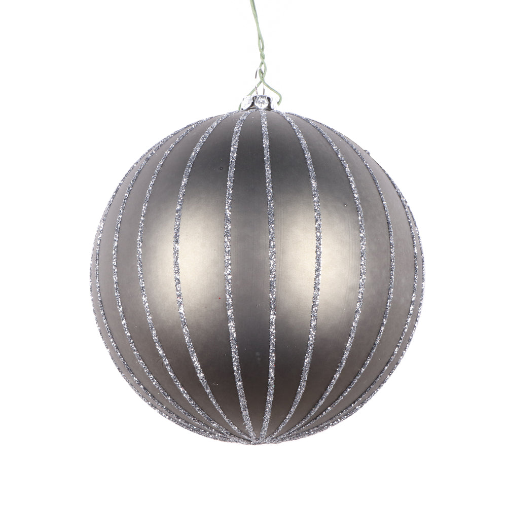 Vickerman 4" Pewter Matte Glitter Ball Christmas Ornament 4 pieces per bag