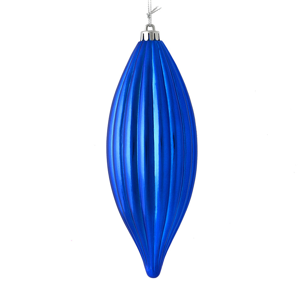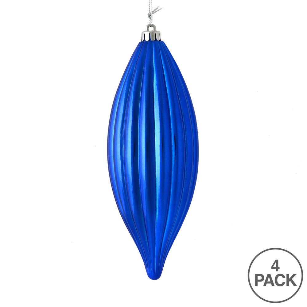 Vickerman 8" Blue Shiny Line Finial Ornament Pack of 4