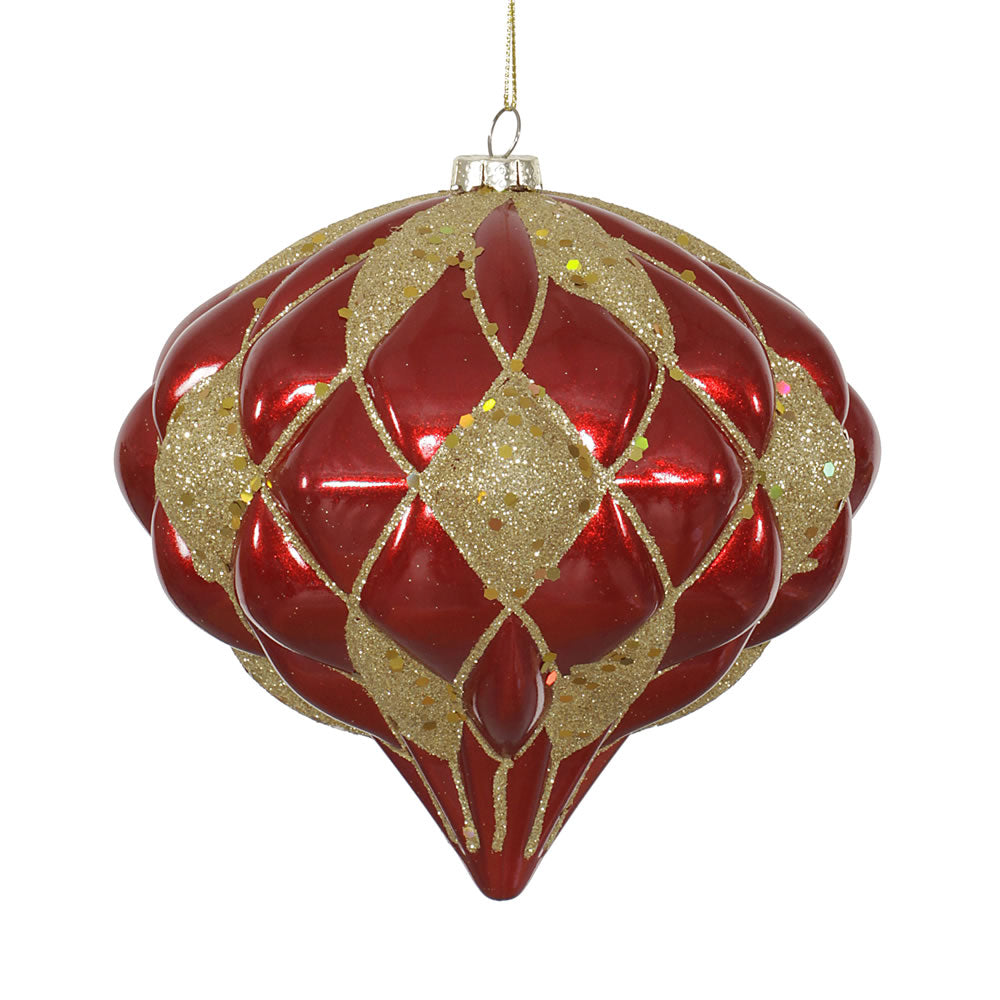 Vickerman 5.7" Red and Gold Matte/Glitter Diamond Onion Christmas Ornament