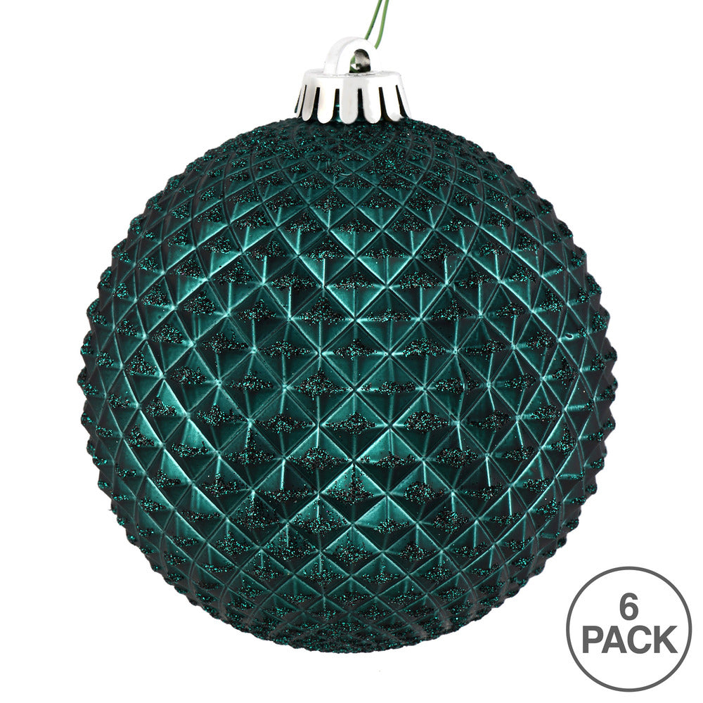 Vickerman 4" Sea Blue Durian Glitter Ball Ornament 6 per Bag