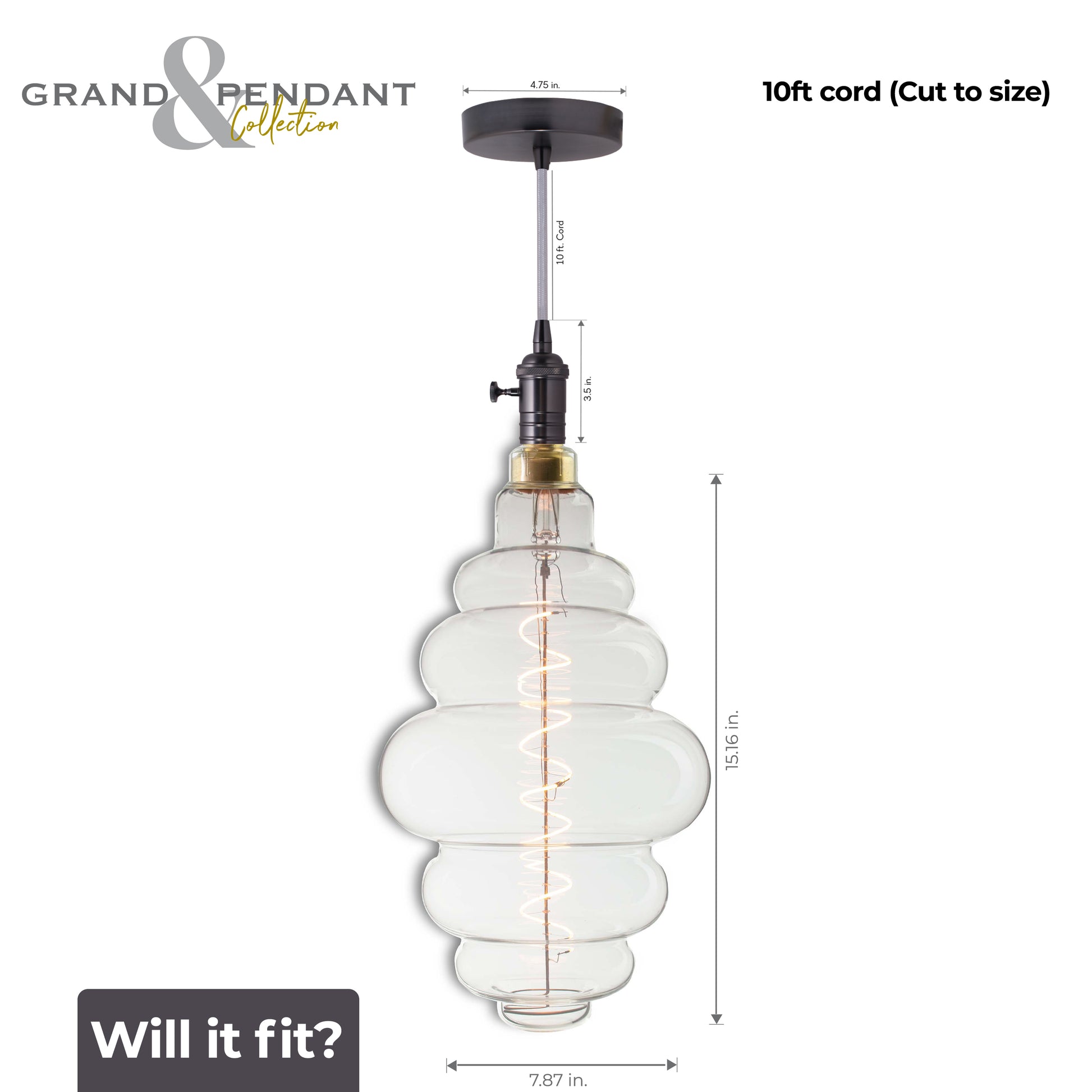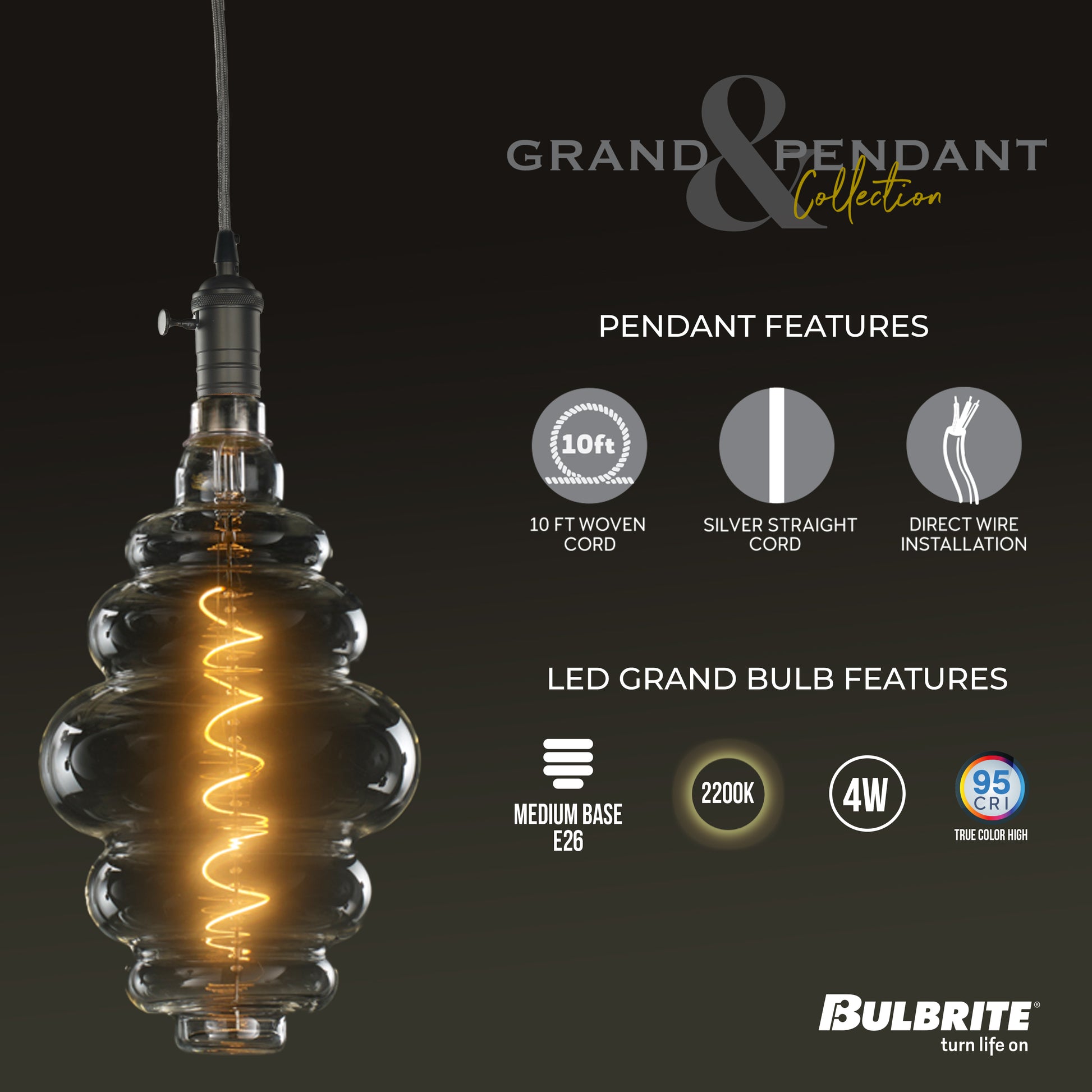 BULBRITE FIXTURES DIRECT WIRE PENDANT KIT VINTAGE GUNMETAL SOCKET WITH SILVER CORD AND LED BEEHIVE SHAPED MEDIUM SCREW (E26) 4W DIMMABLE GRAND NOSTALGIC FILAMENT LIGHT BULB 2200K/AMBER 60W INCANDESCENT EQUIVALENT 1PK (810082)