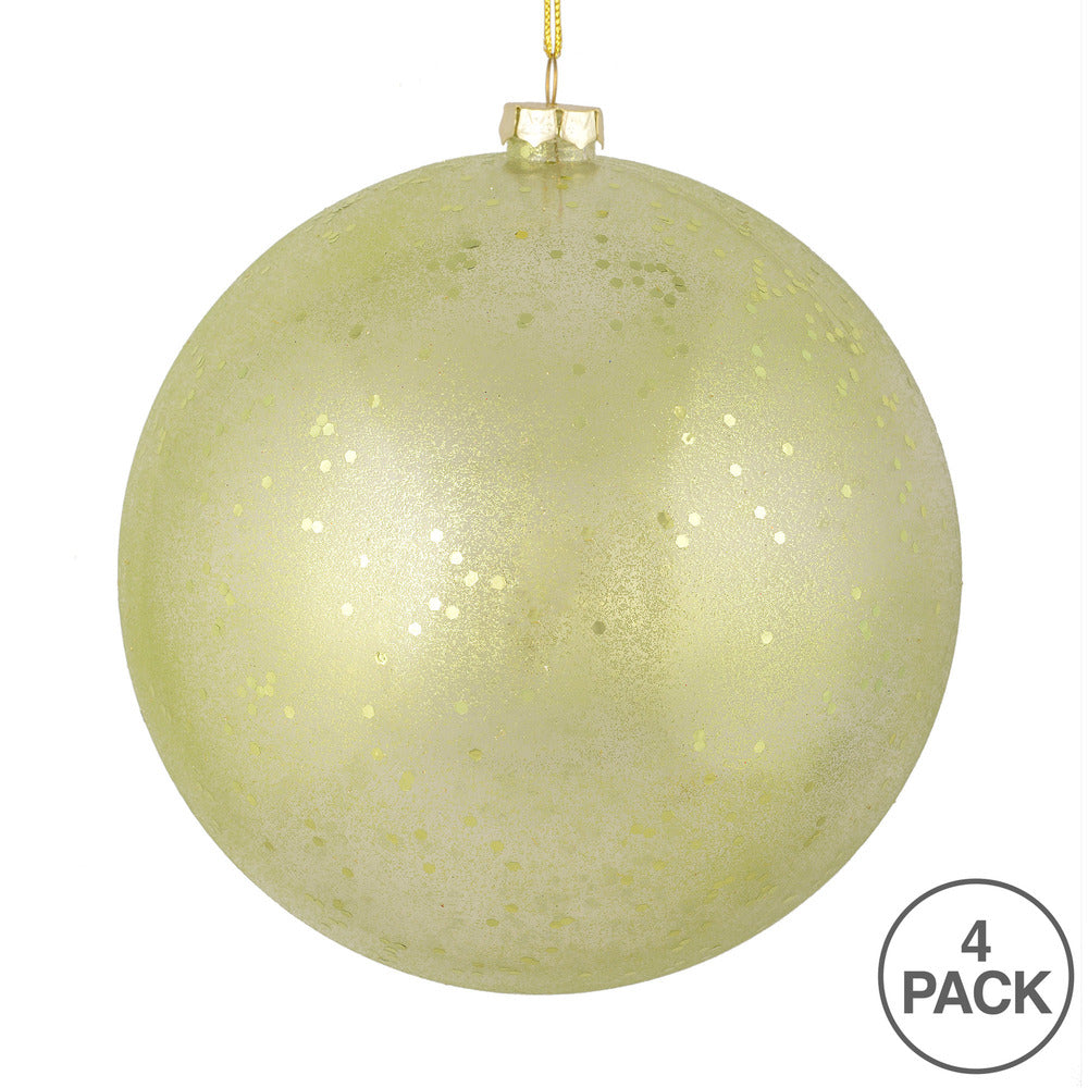 Vickerman 4.75" Celadon Candy Finish Ball Ornament with Glitter Lines 4 per Bag