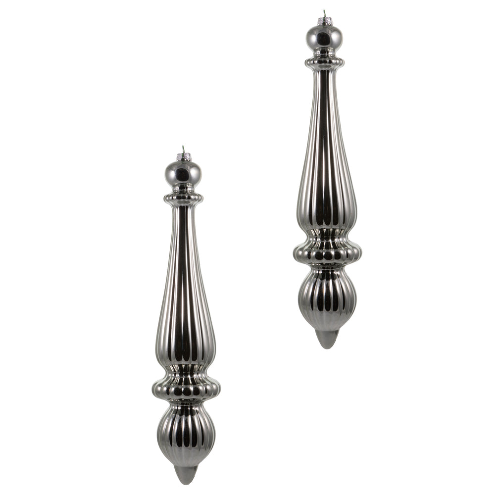 Vickerman 14" Pewter Shiny Finial Drop Christmas Ornament UV Treated with Drilled and Wired Cap 2 per bag