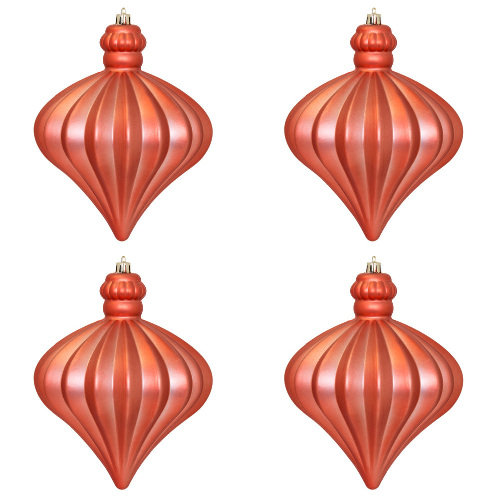Vickerman 6" Coral Matte Onion Drop Christmas Ornament 4 per pack