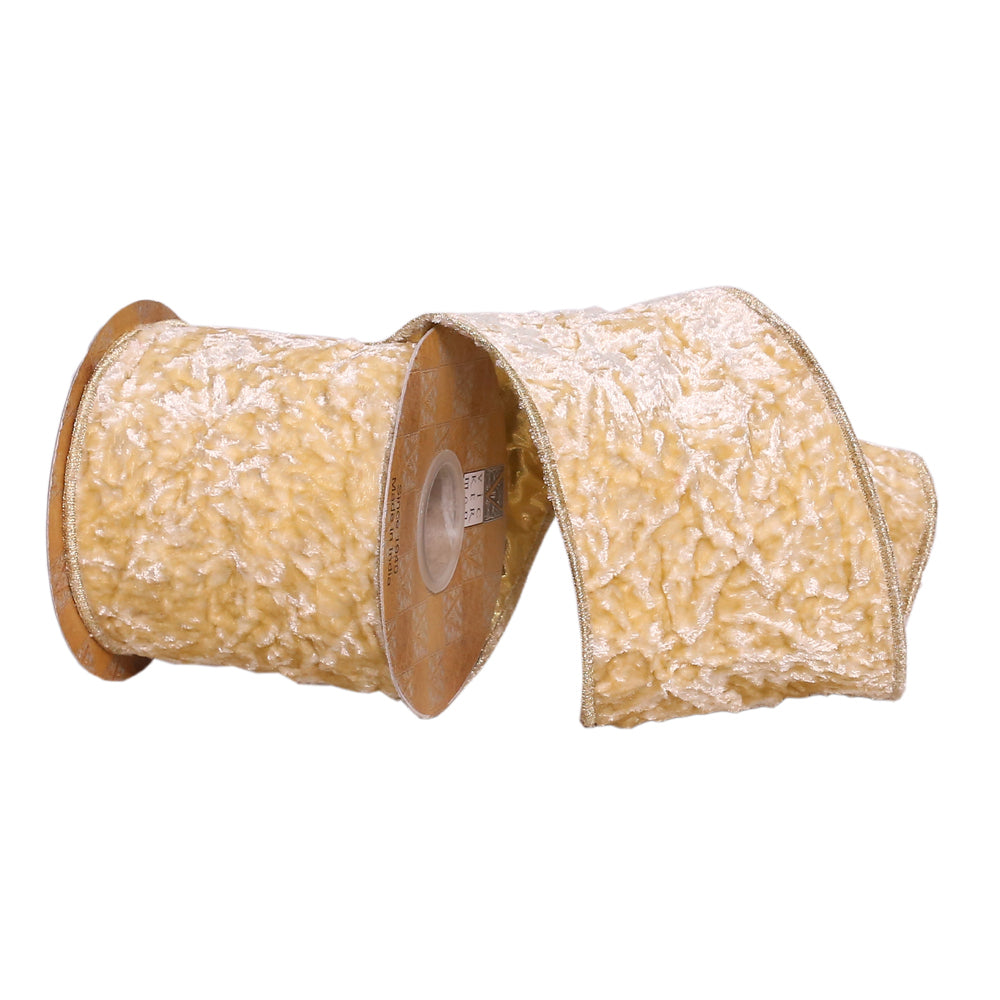 Vickerman 4" x 5 Yards Beige Crushed Velvet Wired Edge Christmas Ribbon.