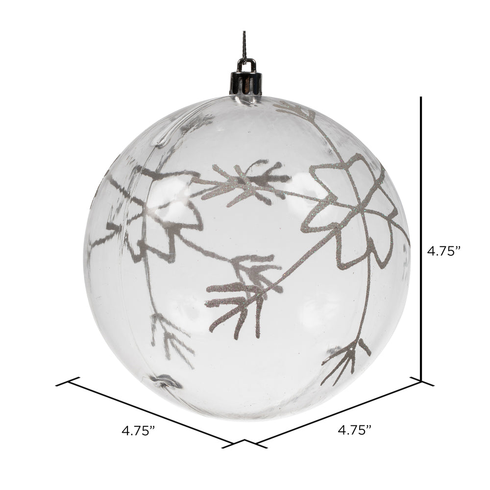 Vickerman 4.75" Clear Ball Ornament with White Glitter Swirl 4 per Box