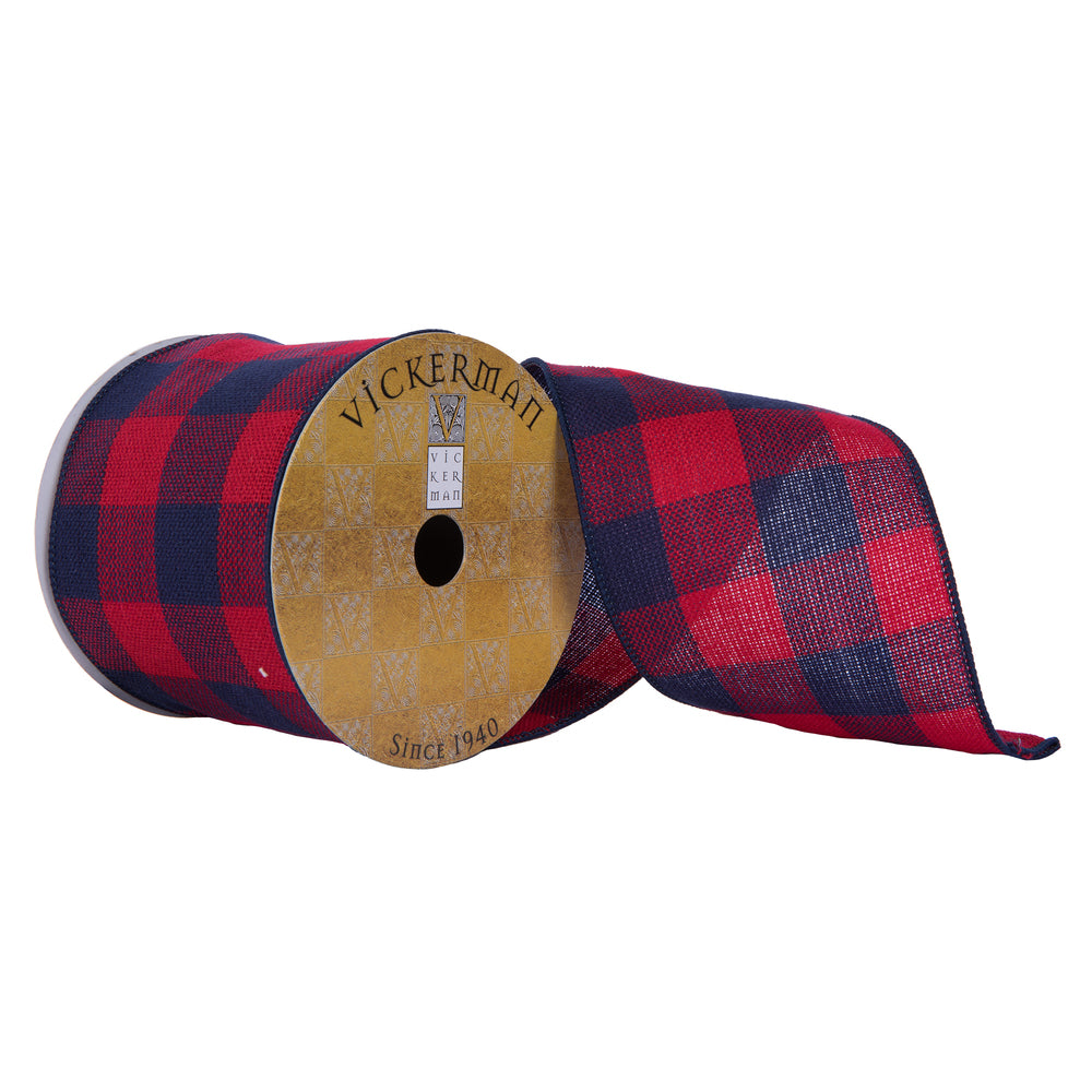 Vickerman 4" x 10 Yards Red and Dark Blue Plaid Christmas Ribbon