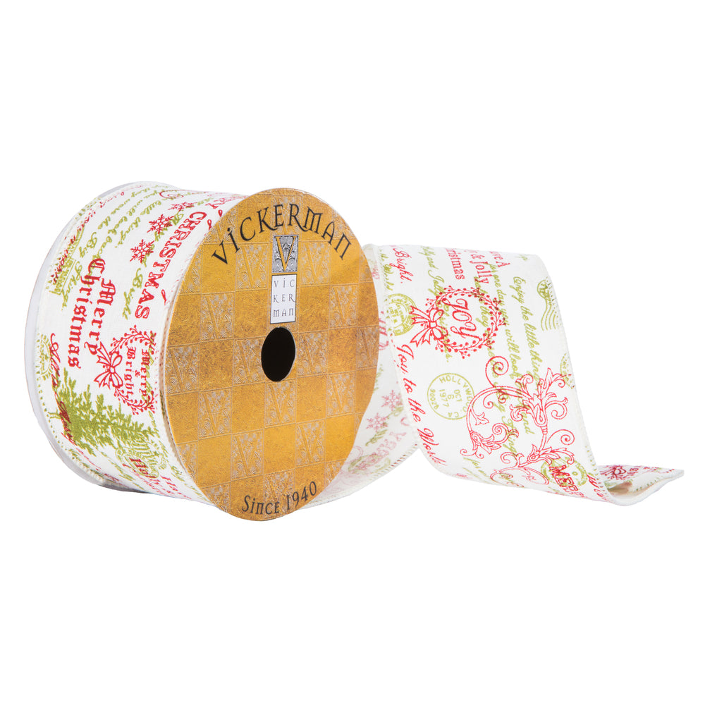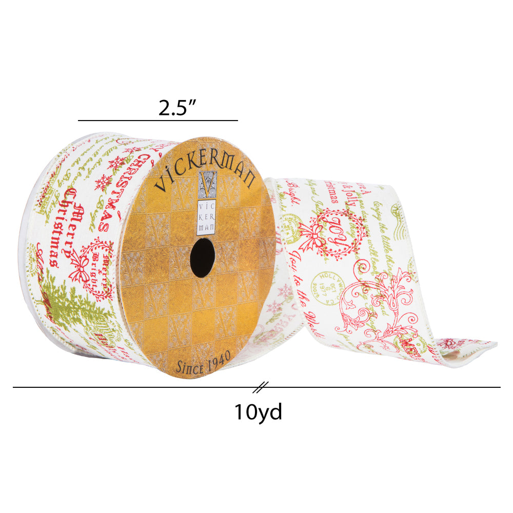 Vickerman 2.5" x 10 Yard Red and Green Nostalgic Stamp Pattern Christmas Ribbon