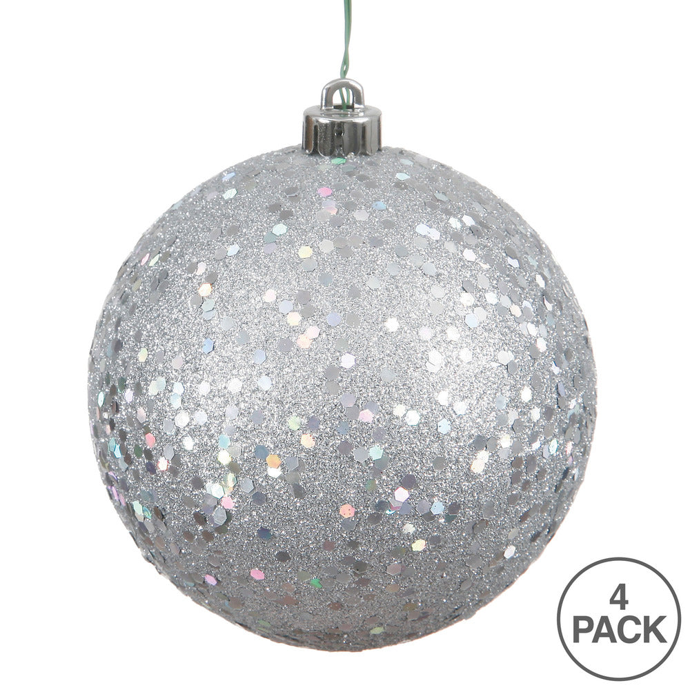 Vickerman 4.75" Silver Sequin Ball Ornament 4 per Bag