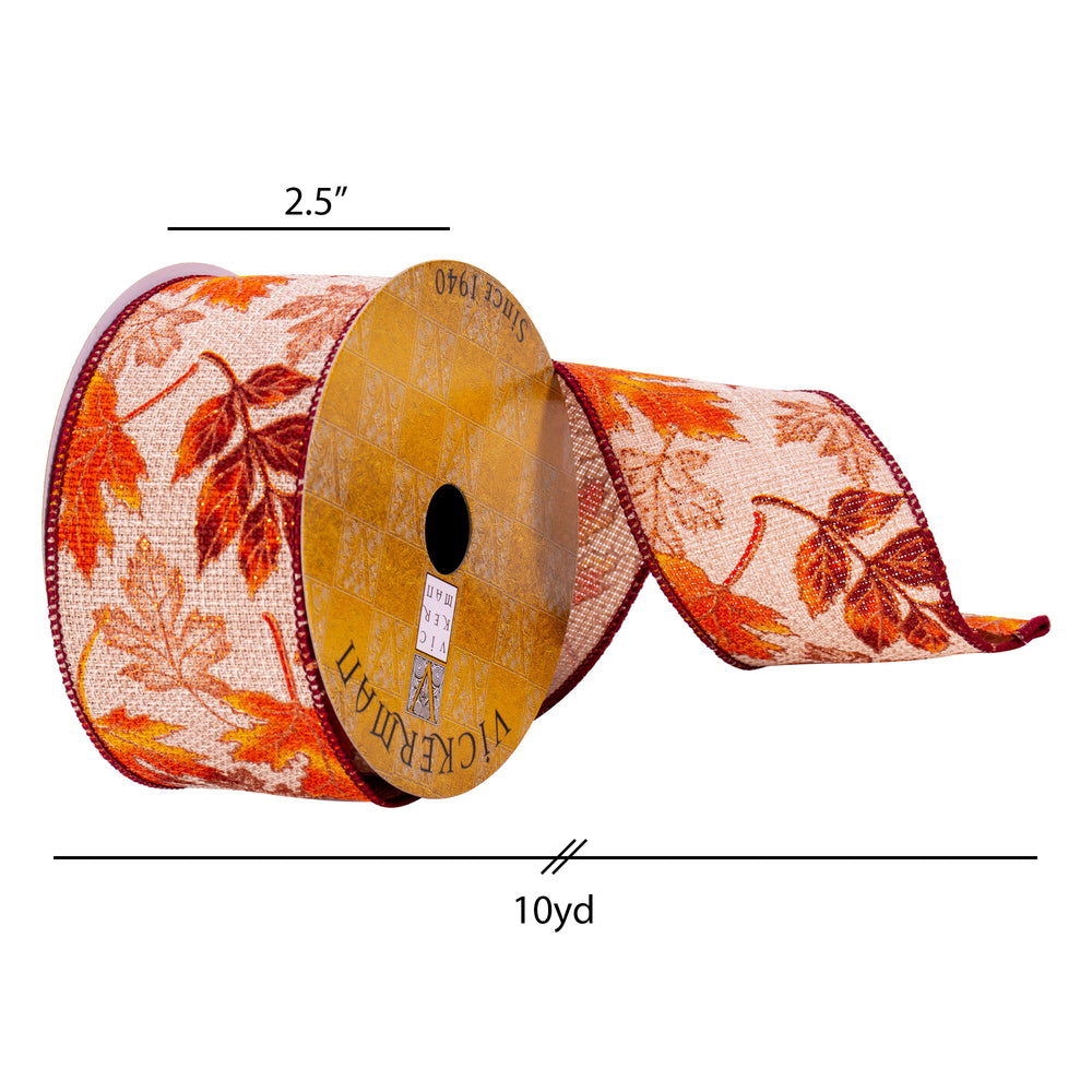 Vickerman 2.5" x 10 Yards Jute Fall Leaves Ribbon