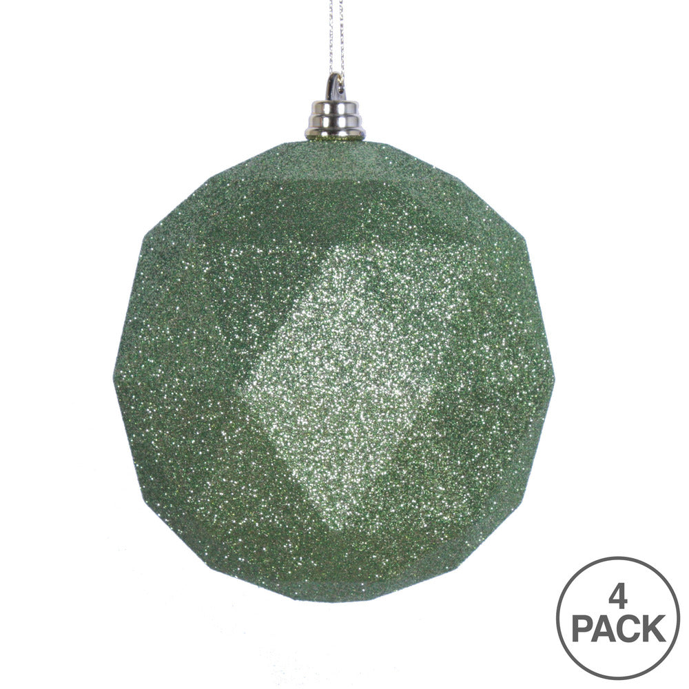 Vickerman 4.75" Lime Glitter Geometric Ball Ornament 4 per bag