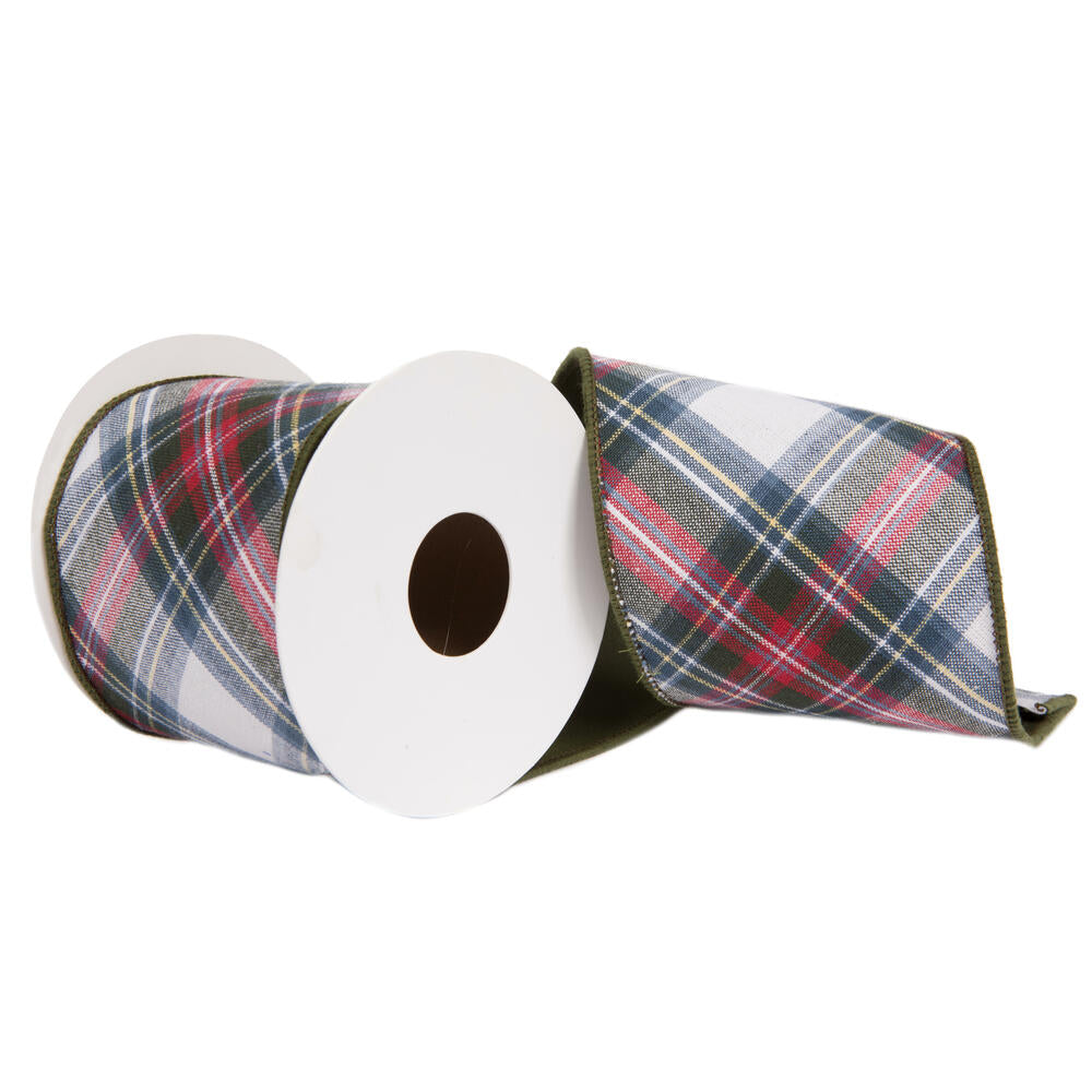 Vickerman 4" x 5 Yards Multi Cotton Plaid Taffetta Back Double Fused Ribbon.