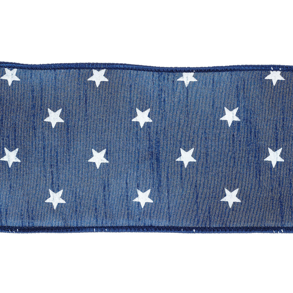Vickerman 4" x 10 Yards Dark Blue/White Stars Print Wired Edge Holiday Ribbon.