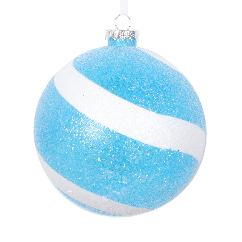 Vickerman 4.75" Baby Blue and White Swirl Sugar Glitter Ball. Includes 3 pieces. String Hanger.