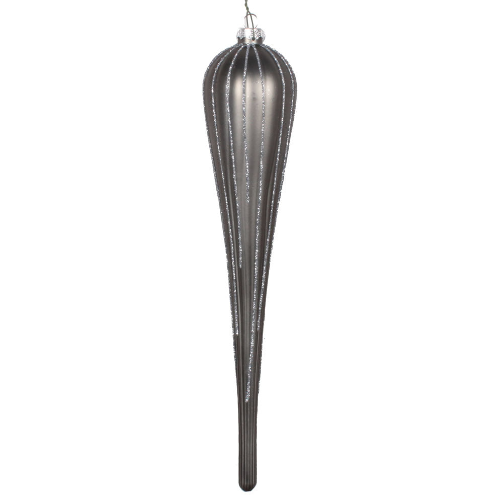 Vickerman 11" Pewter Matte Glitter Drop Christmas Ornament Set of 3
