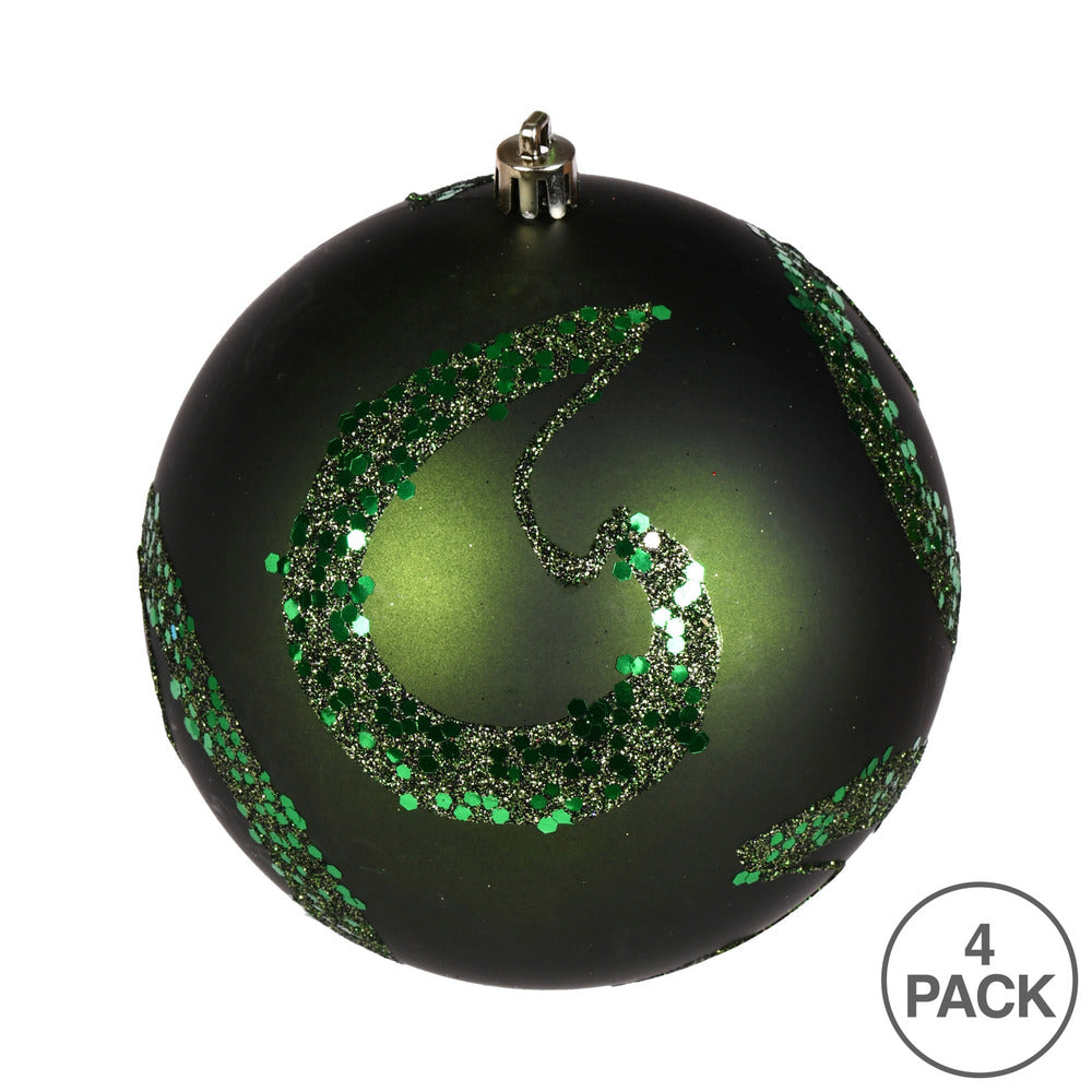 Vickerman 4.75" Moss Green Matte Sequin Swirl Ornament 4 per Bag